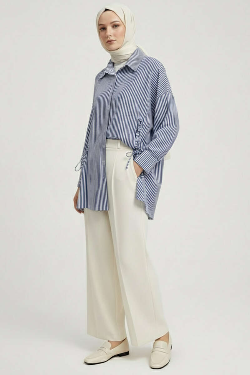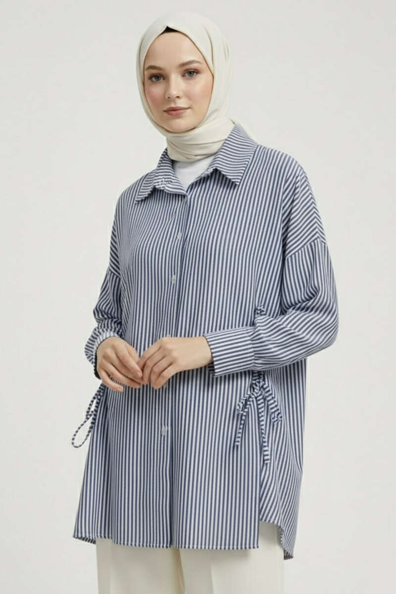Çizgili Yandan Bağlamalı Gömlek Lacivert