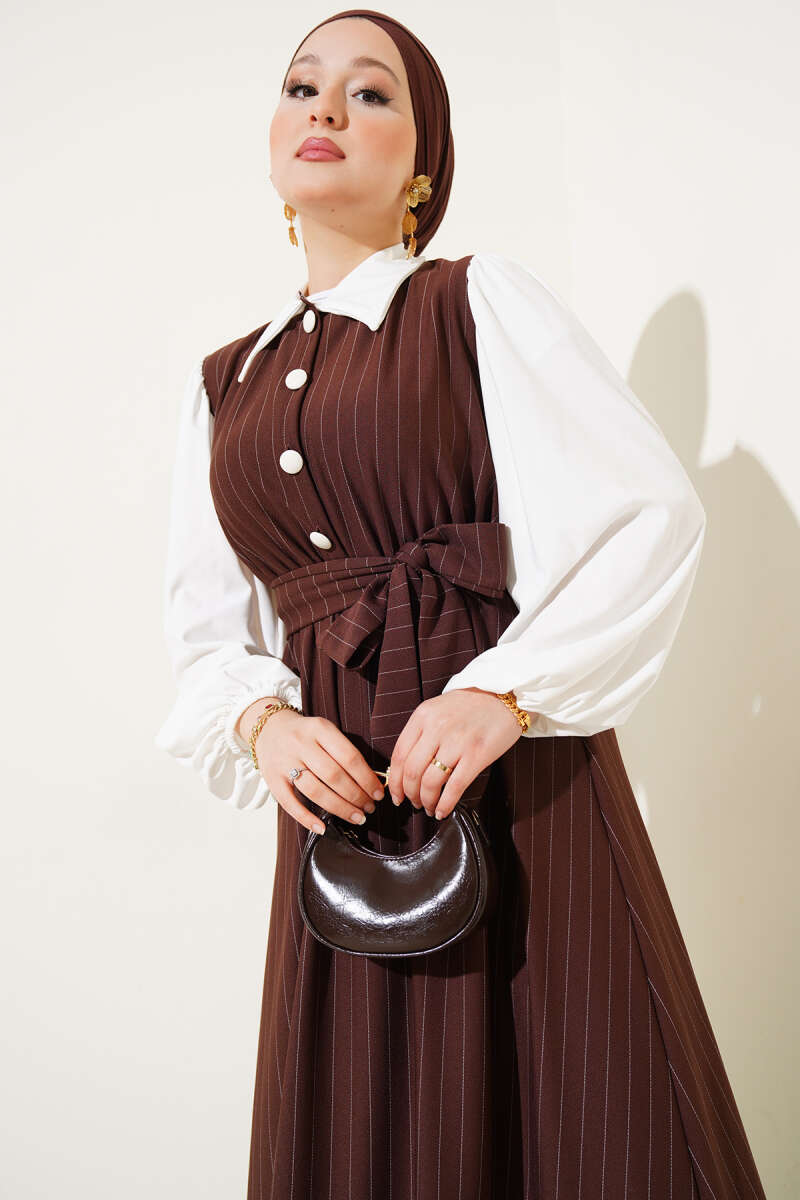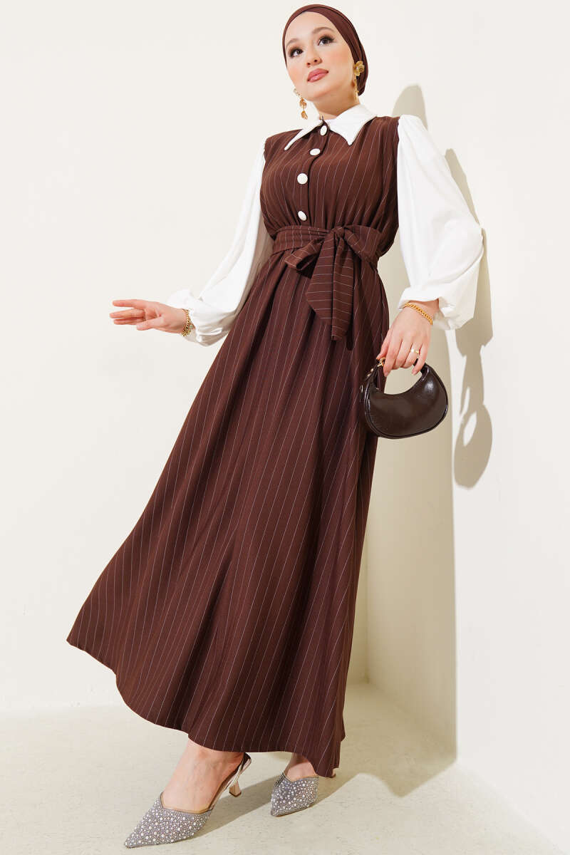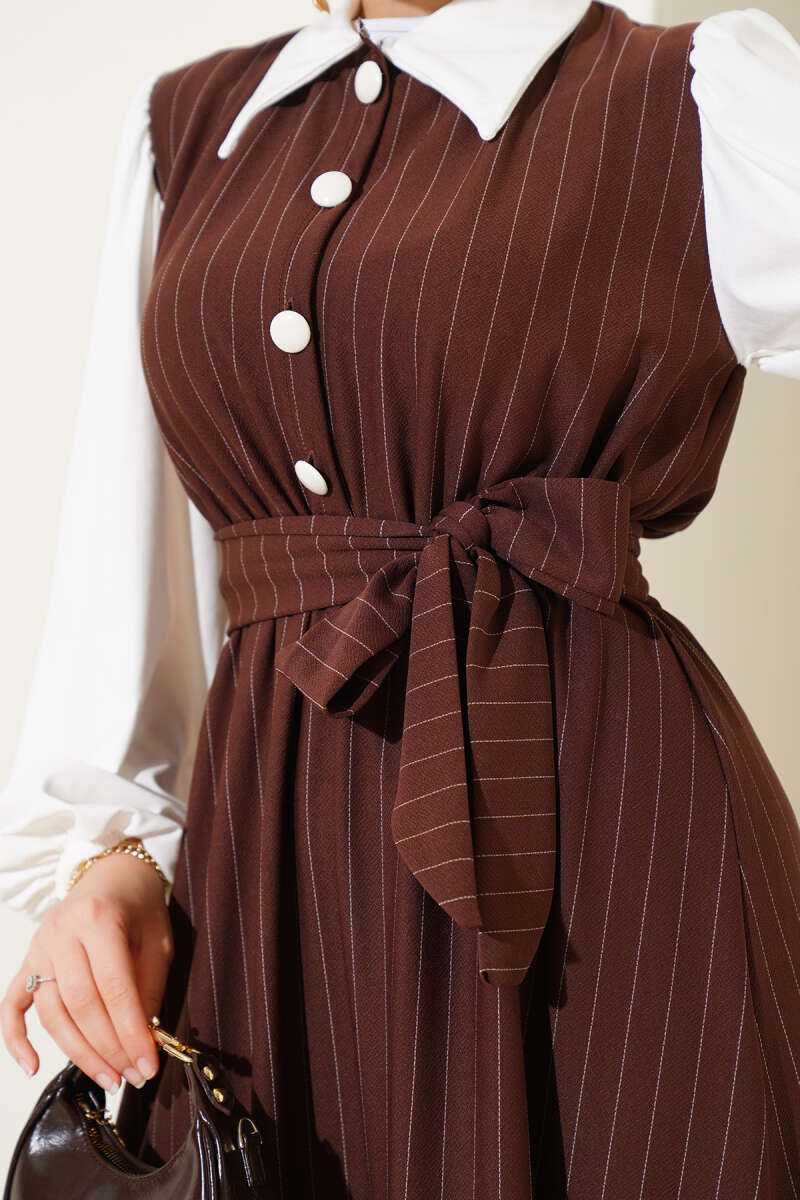 Gömlek Yaka Düğmeli Triko Elbise Kahve