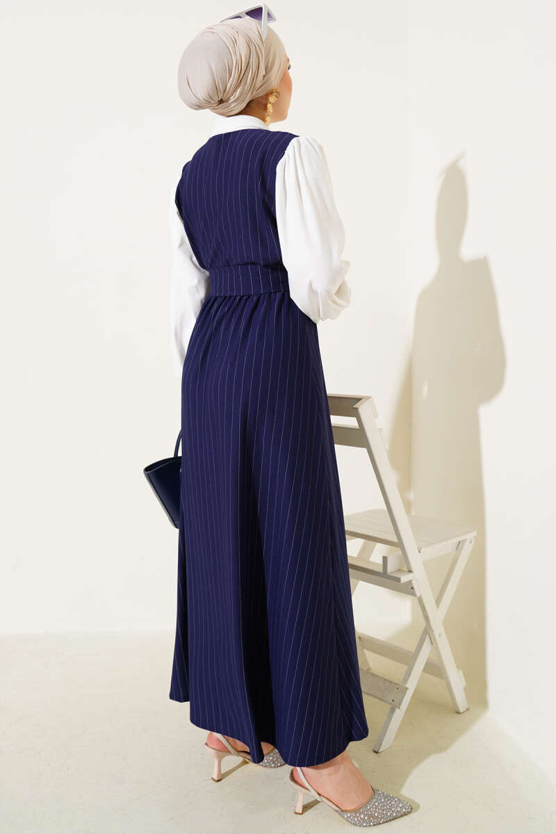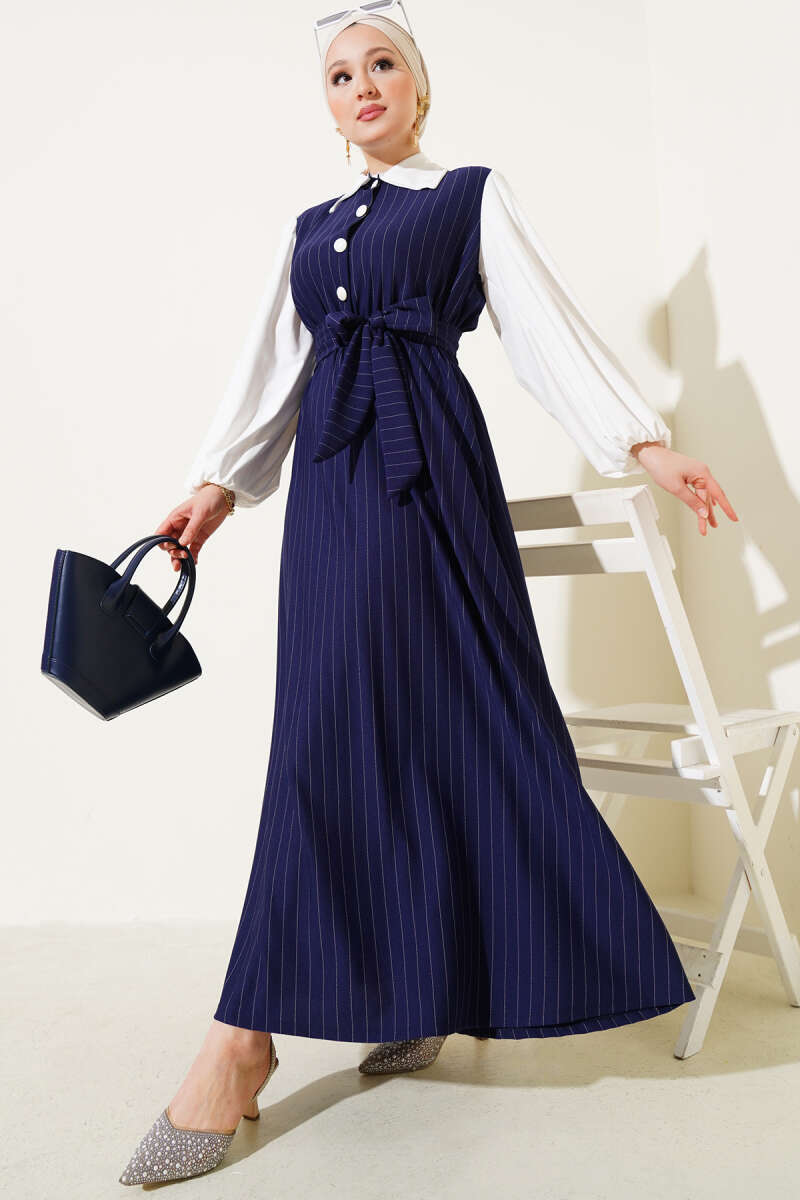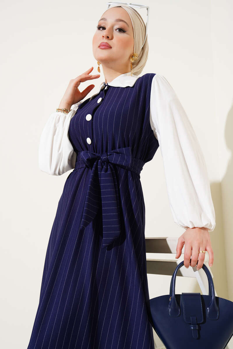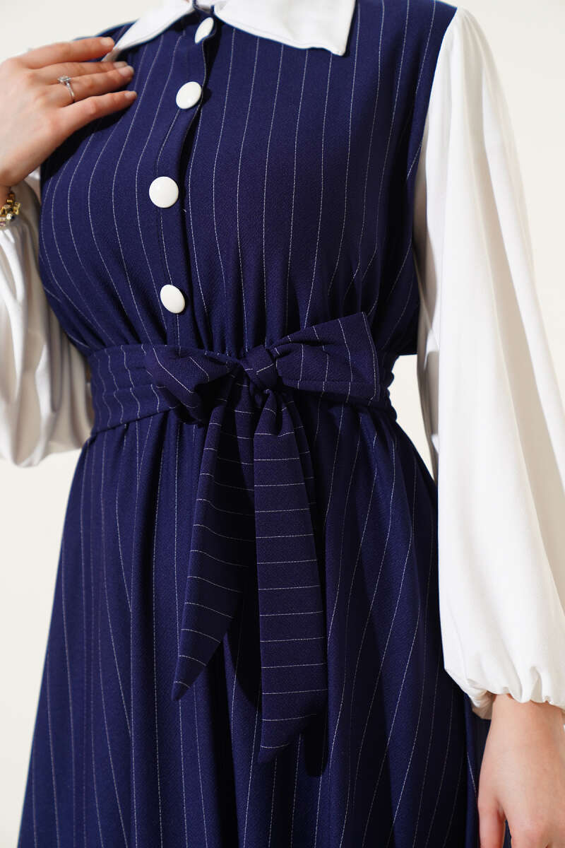 Gömlek Yaka Düğmeli Triko Elbise Lacivert