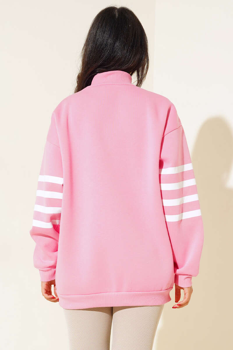 Yeni sezon sweatshirt modelimiz sportif tarzıyla göz kamaştıracak. Yakası yarım fermuarlı modelimiz aynı zamanda dik yakadır. Ön ve kola uzanan çizgi detayları mevcuttur. Kol bilekleri rabinalıdır. Üç iplik model olan sweatshirt modelimiz dolaplarınızda yerleri beklemektedir.
