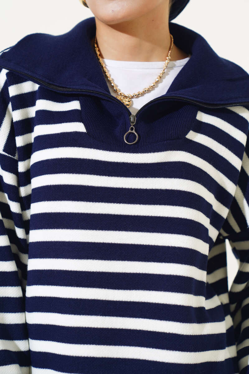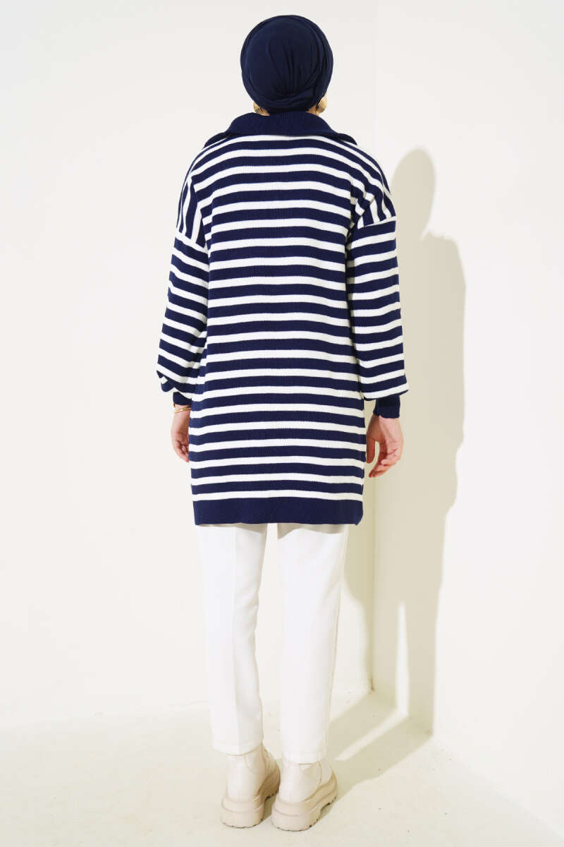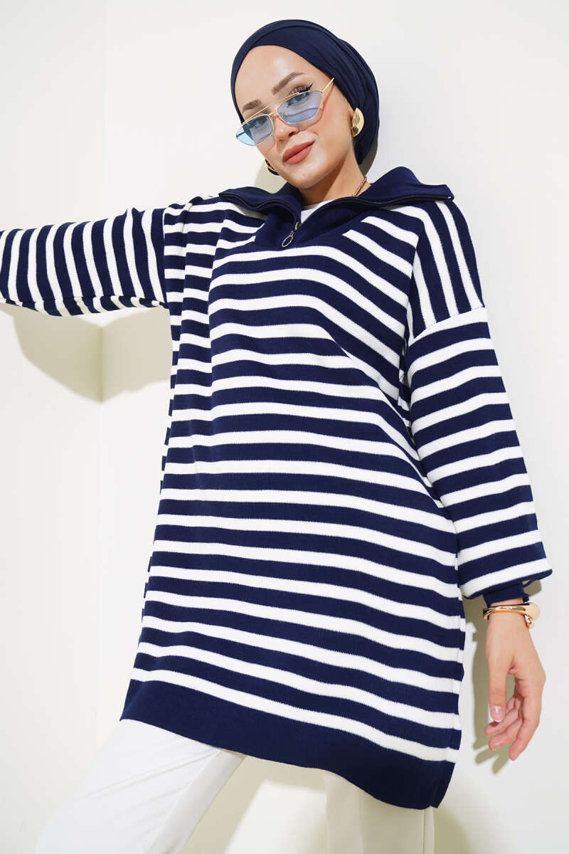 Çizgi Baklava Desen Triko Tunik Lacivert