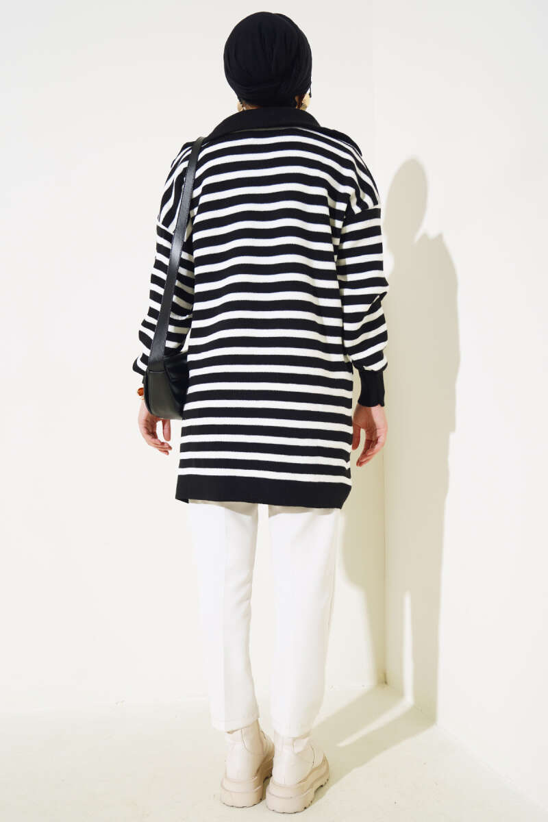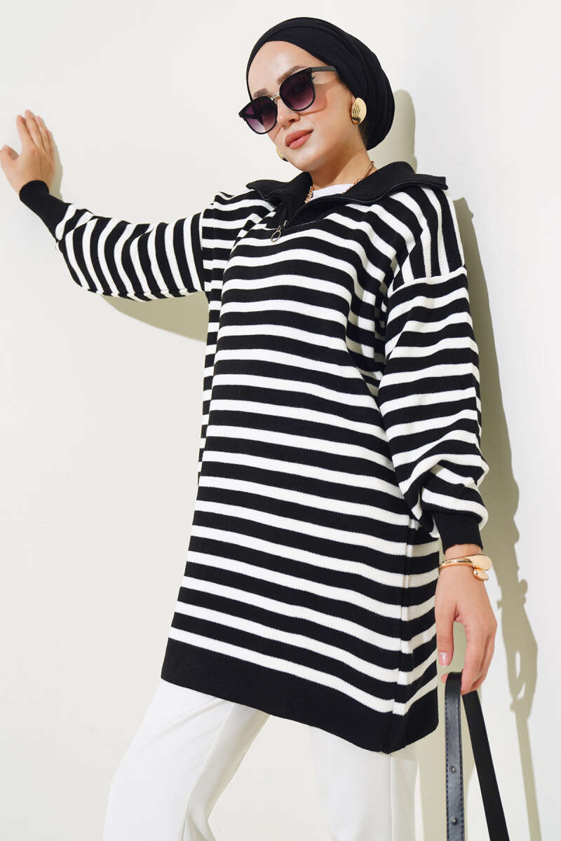 Çizgi Baklava Desen Triko Tunik Zümrüt