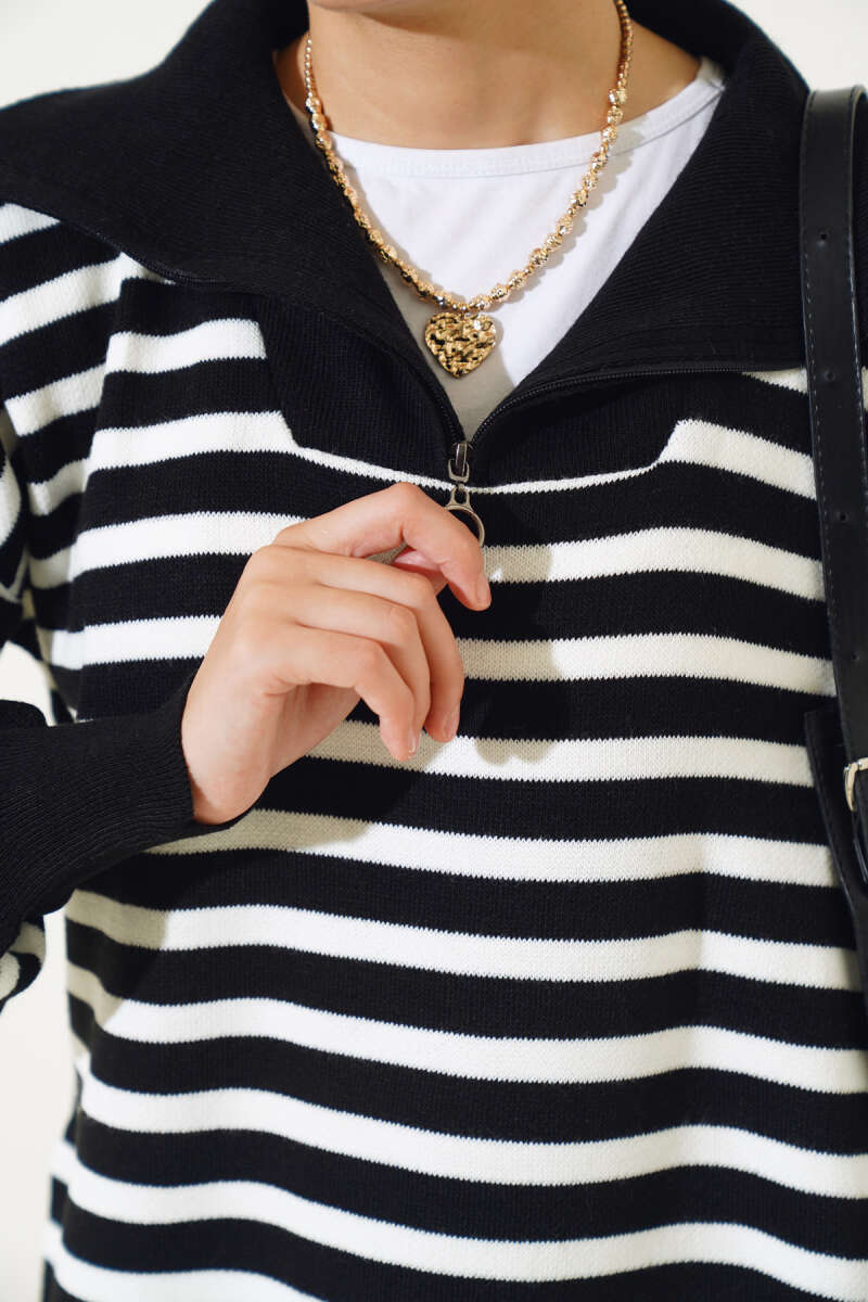 Çizgi Baklava Desen Triko Tunik Lacivert