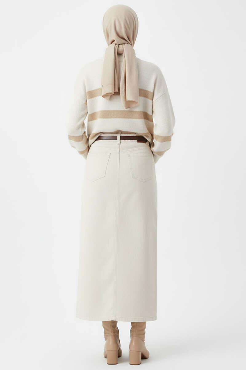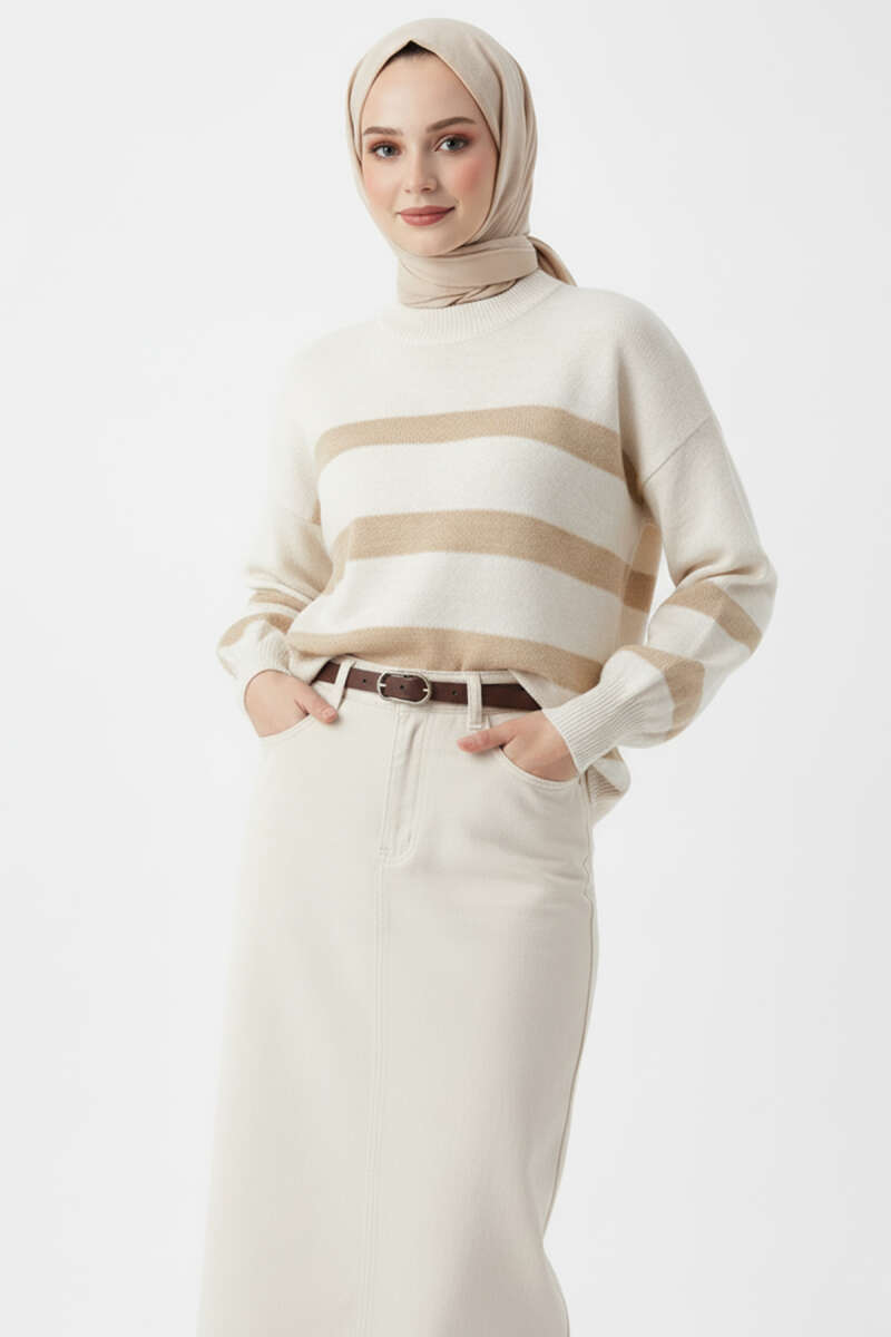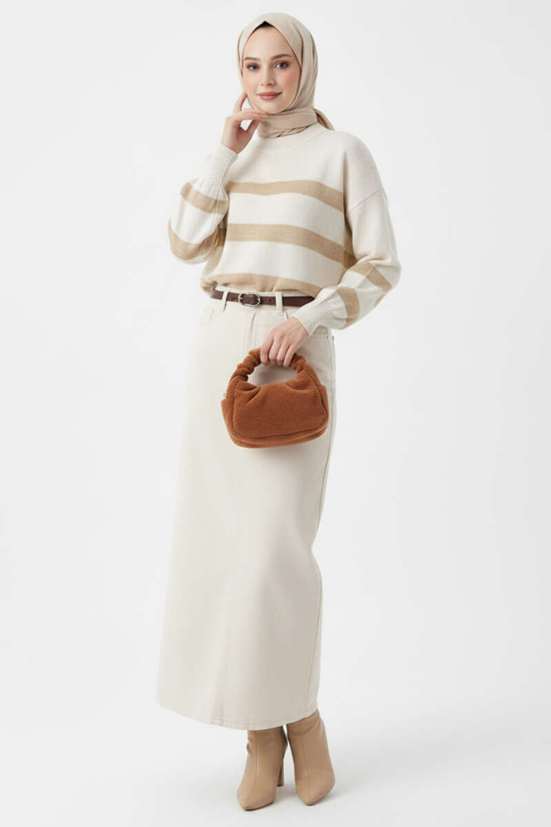 Yan Yırtmaçlı Yumoş Triko Kazak Latte