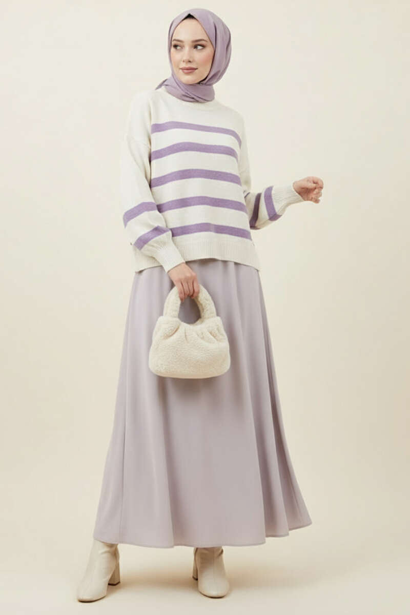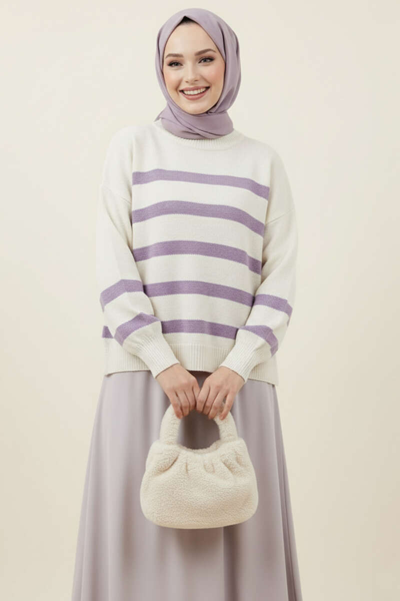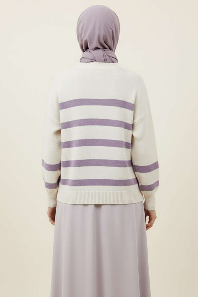 Basic Dikey Çizgi Detaylı Triko Kazak İndigo