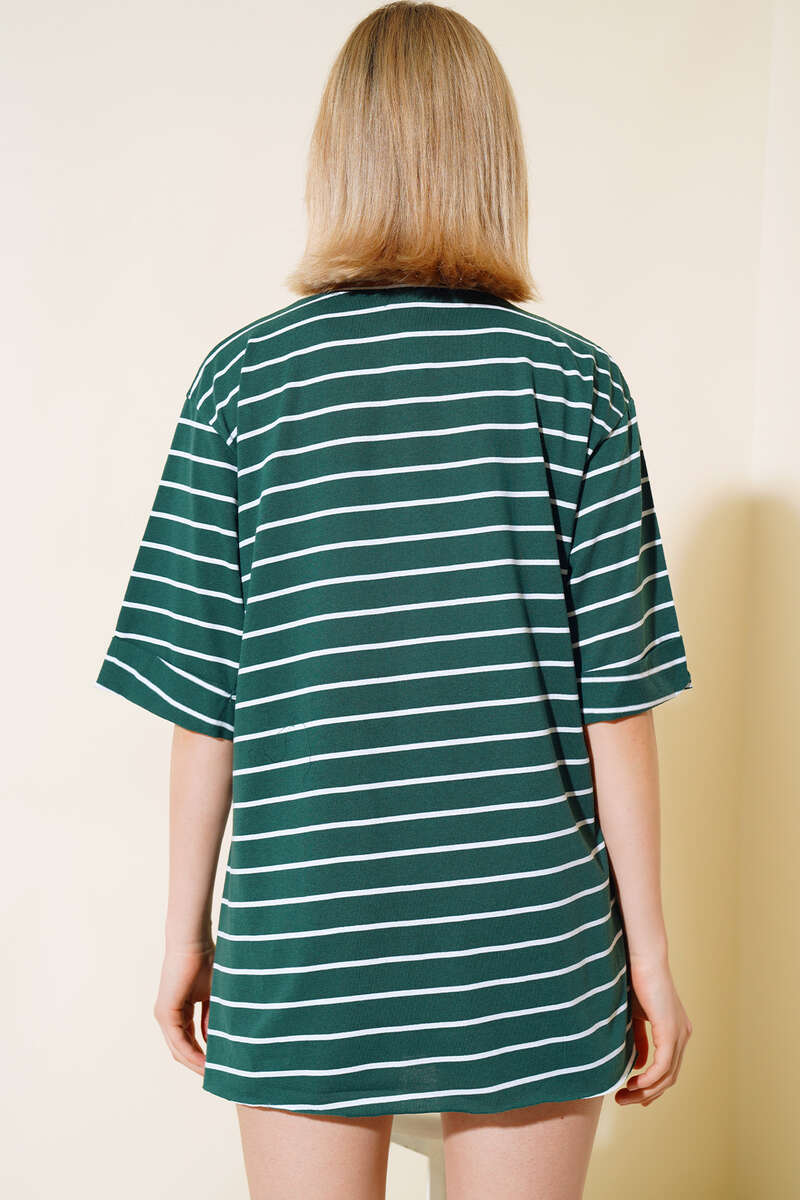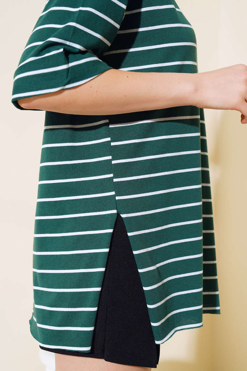 Çizgili Zümrüt Yeşili Tshirt