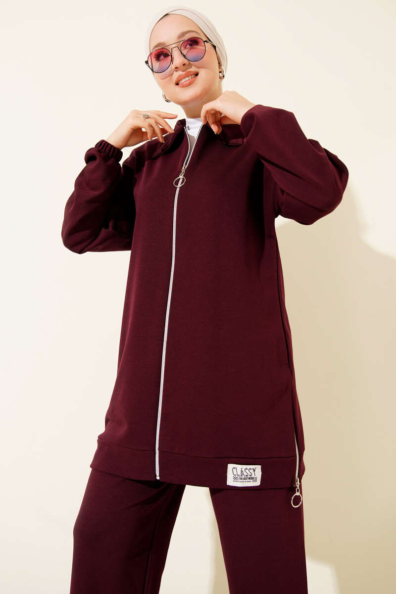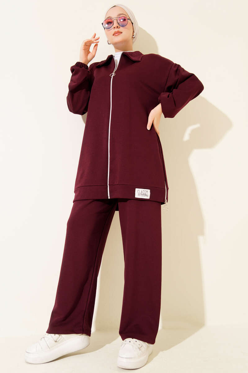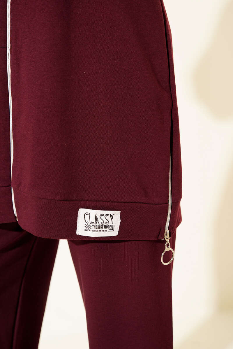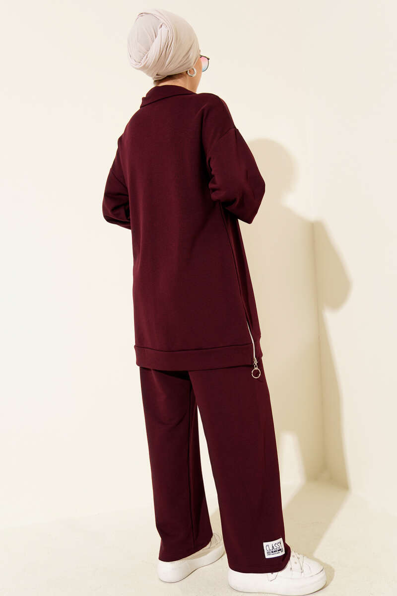 Önü Pileli Kemerli Scuba İkili Takım Bordo