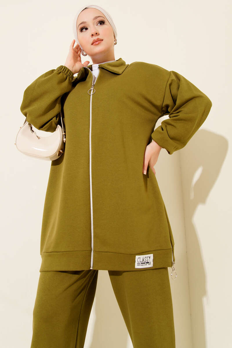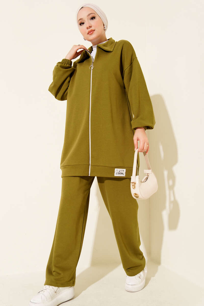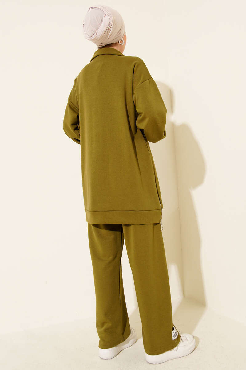 Önü Pileli Kemerli Scuba İkili Takım Haki