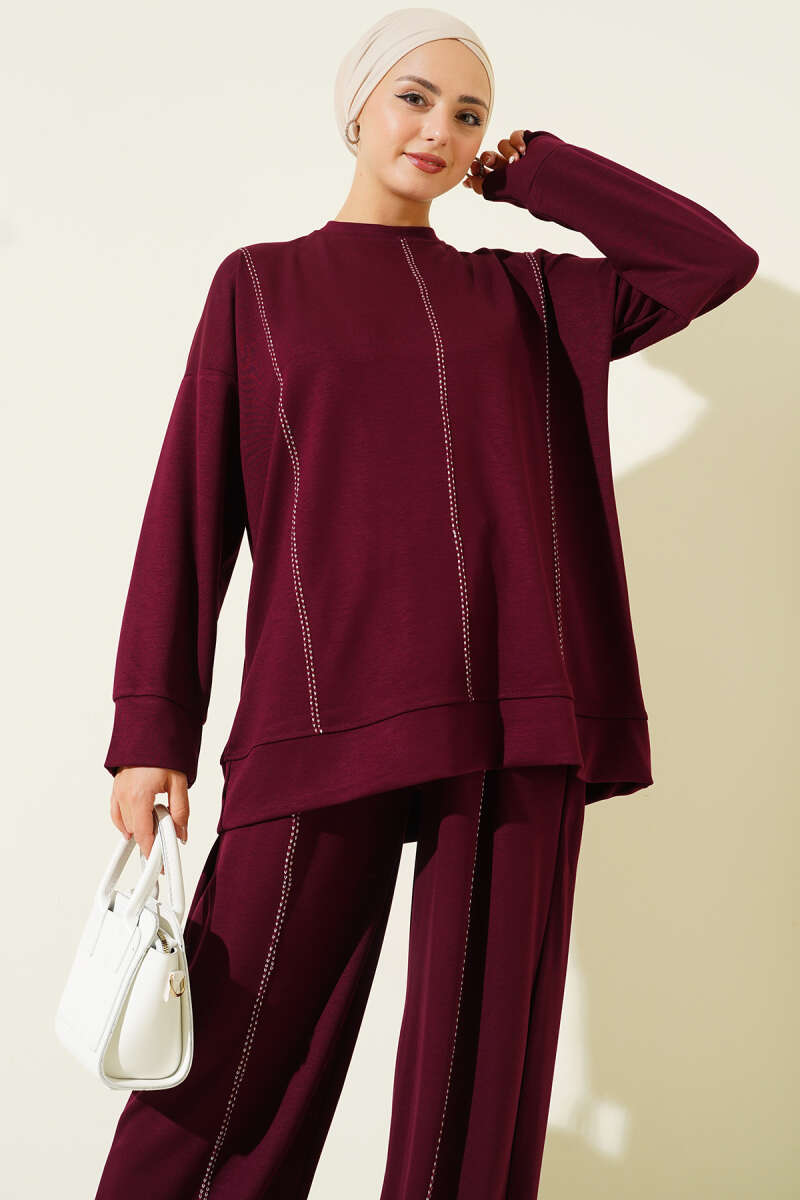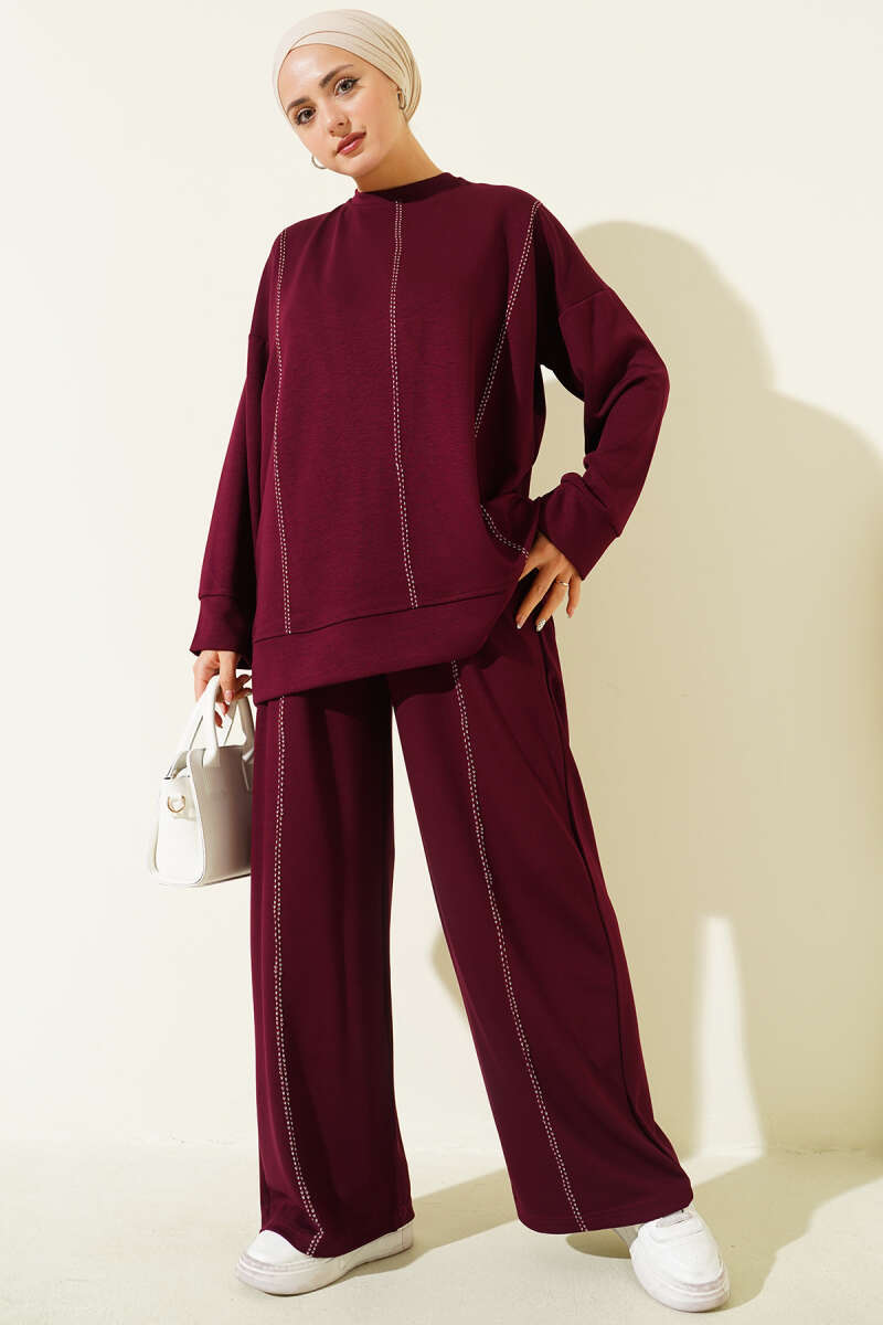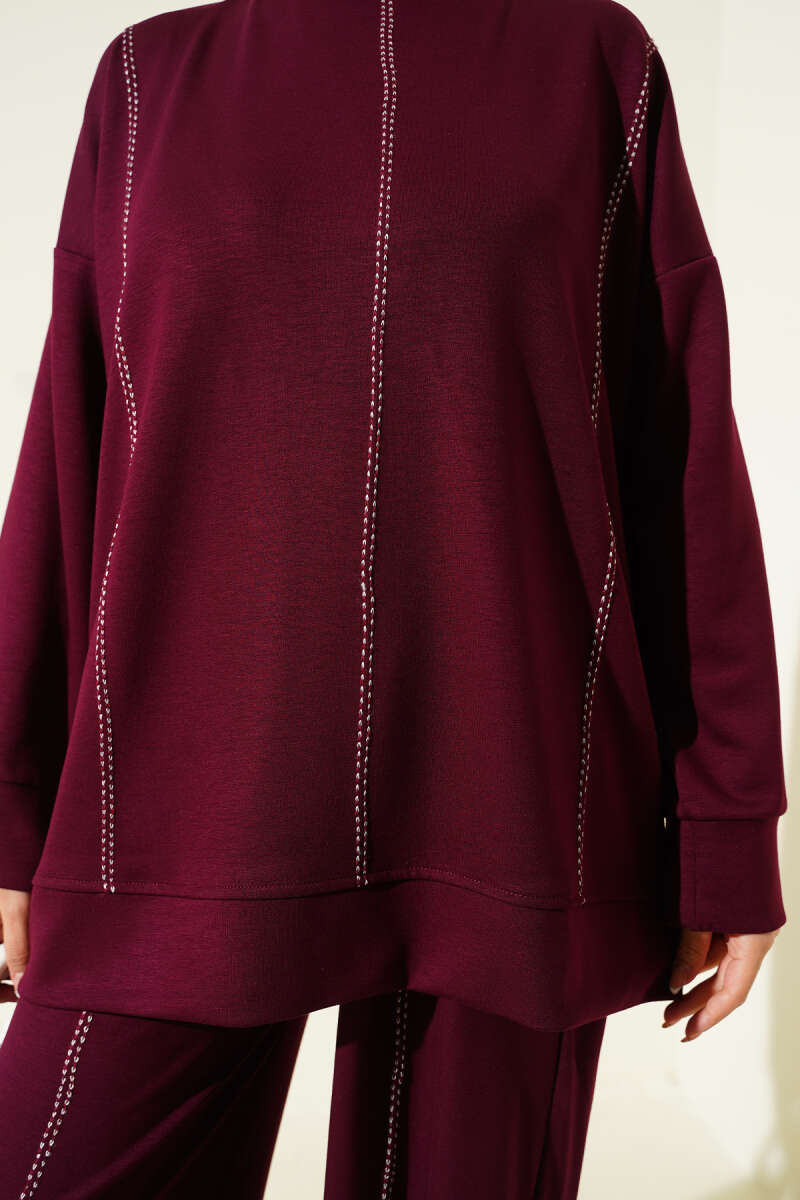 Asimetrik Kesim Bisiklet Yaka İkili Takım Bordo