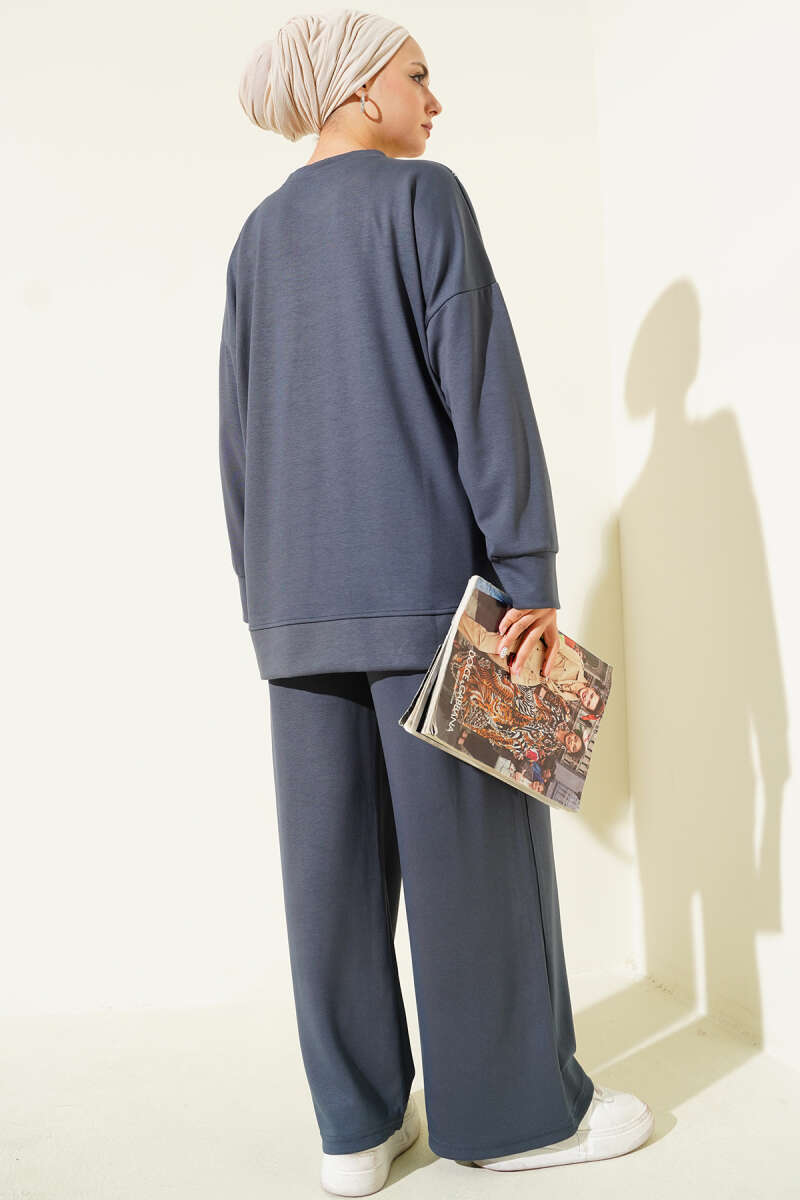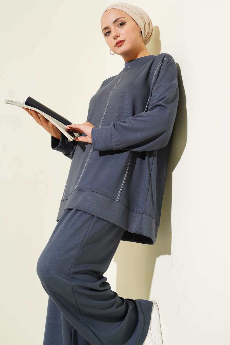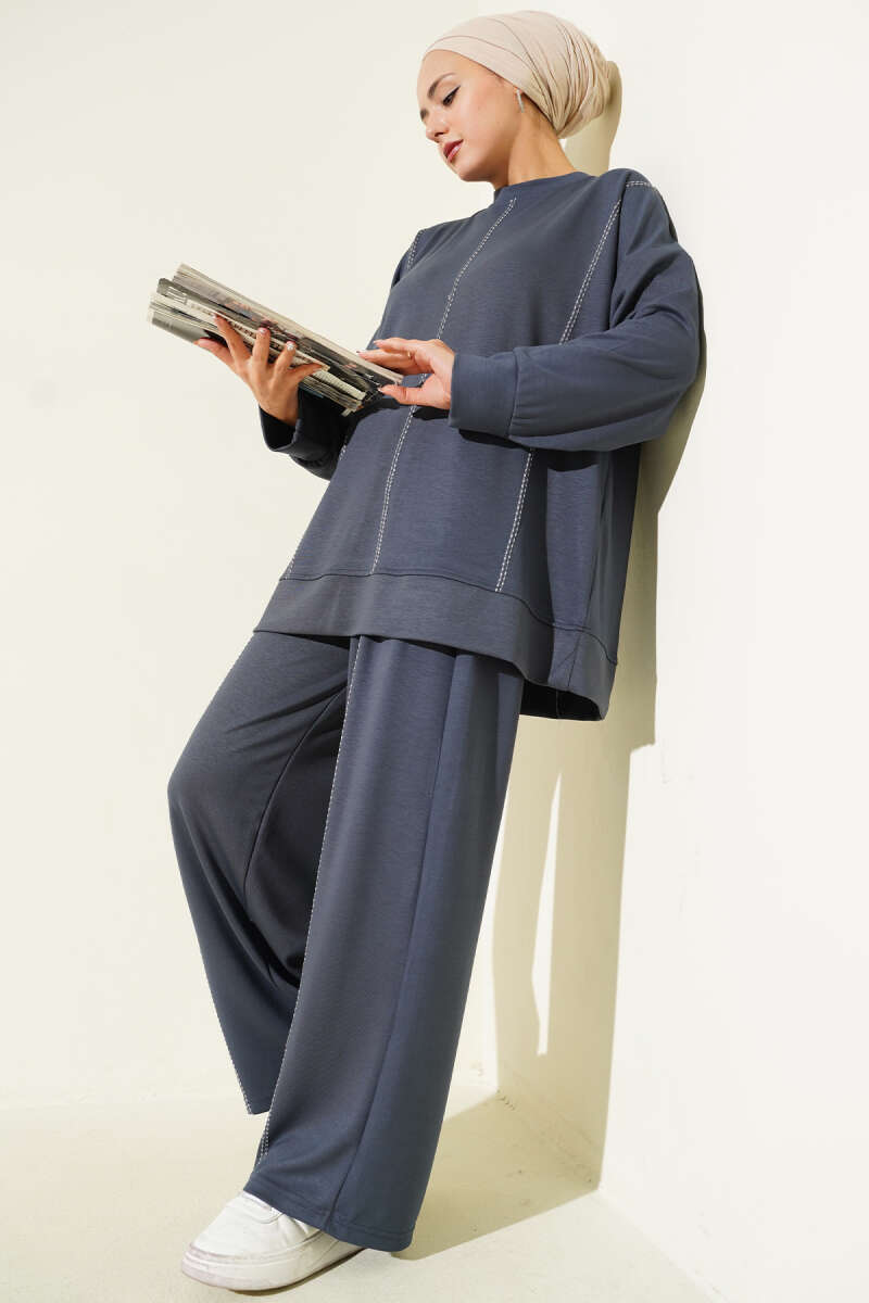 Kol Bilekleri Lastikli Keten İkili Takım İndigo