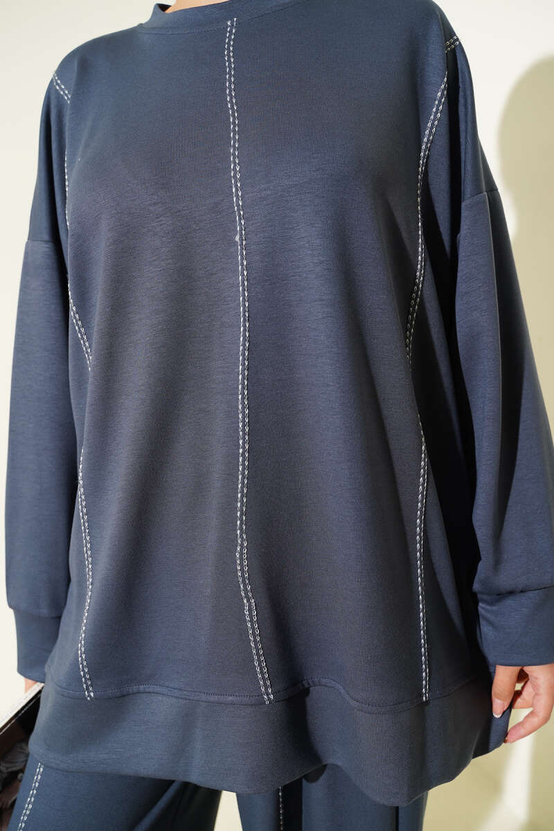 Asimetrik Kesim Bisiklet Yaka İkili Takım Lacivert