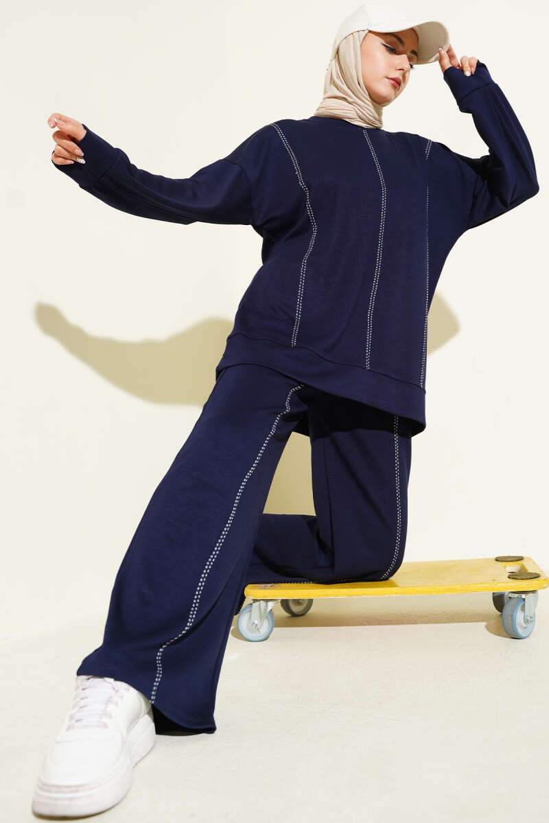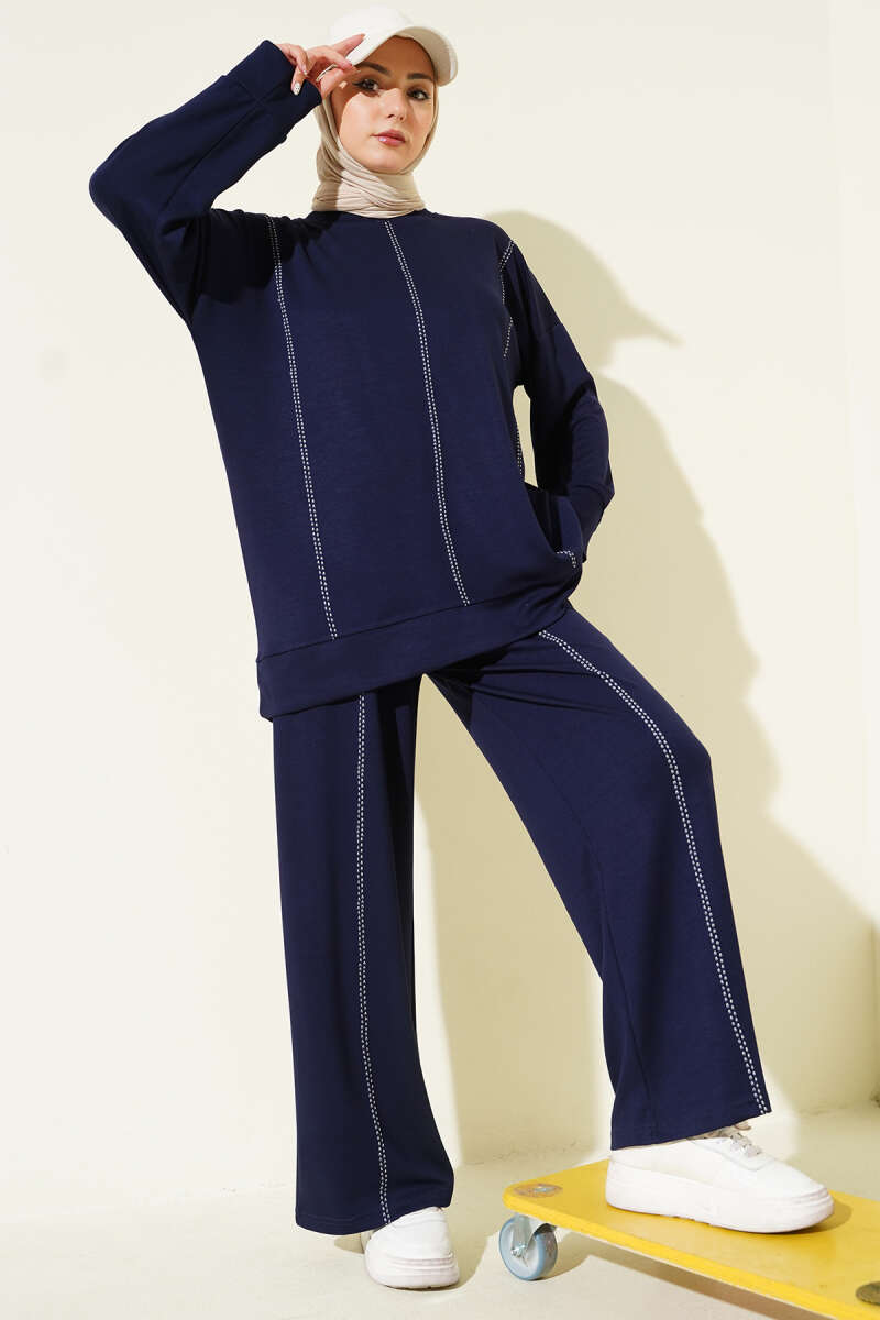 İp Bağlamalı Taşlı Scuba İkili Takım Lacivert