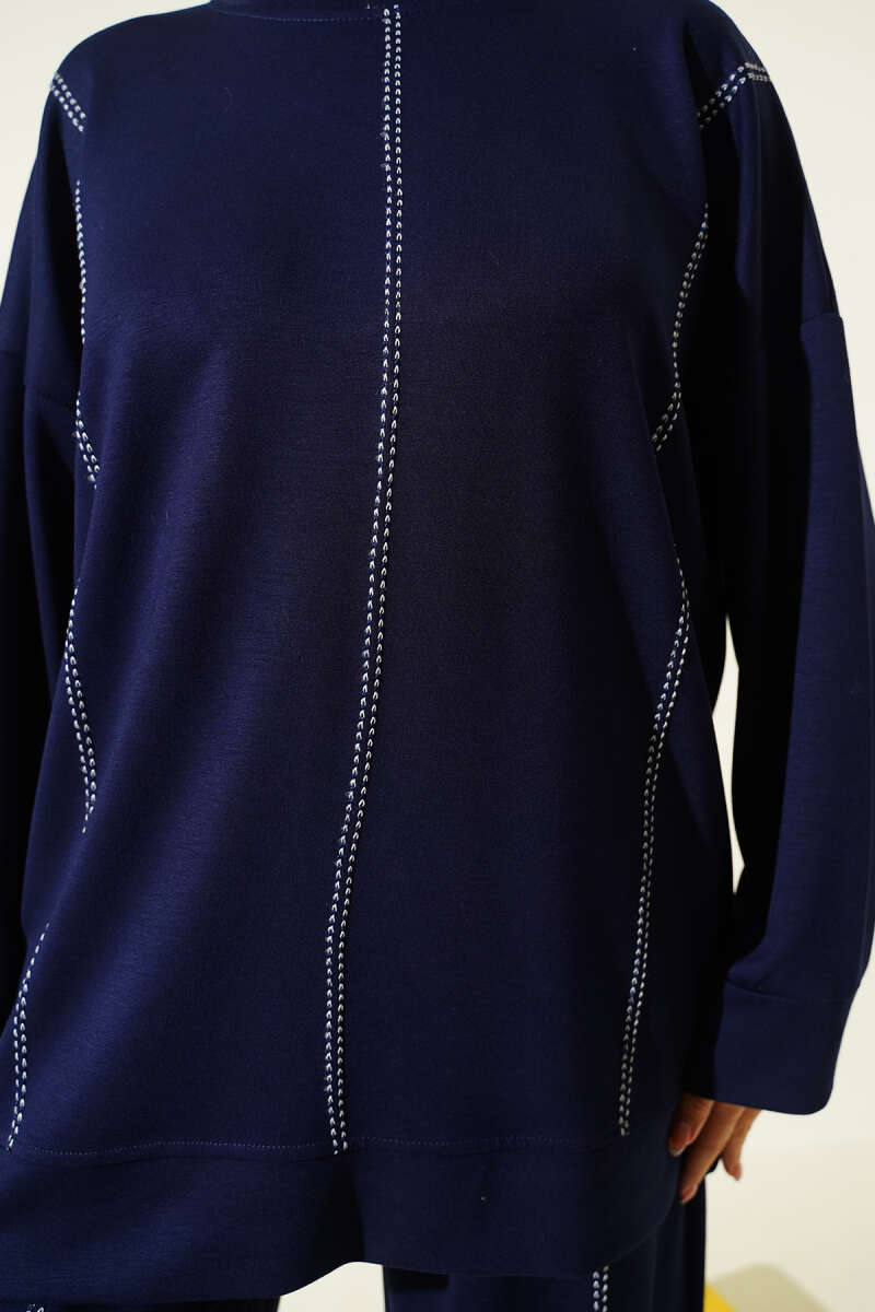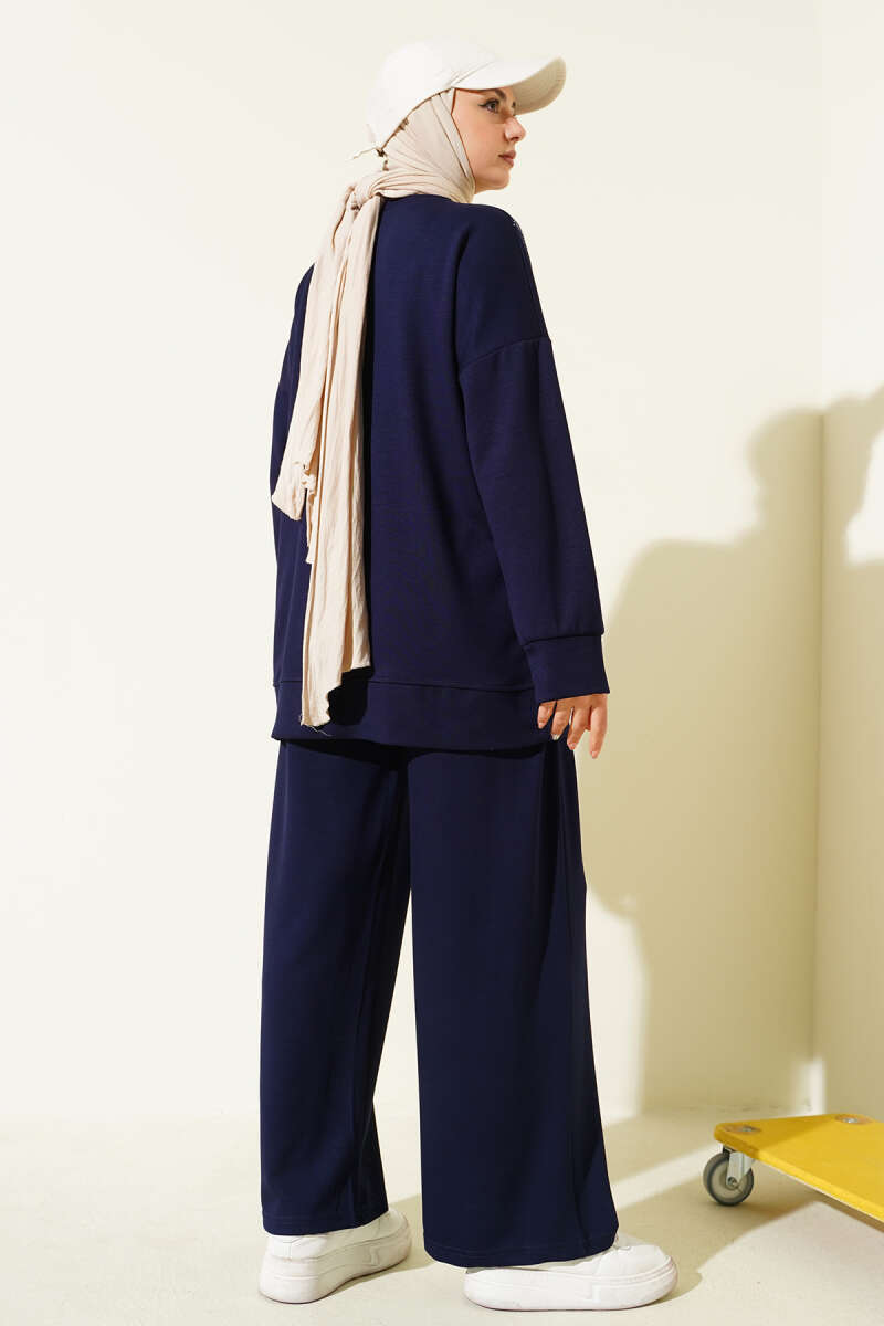 Asimetrik Kesim Bisiklet Yaka İkili Takım Lacivert