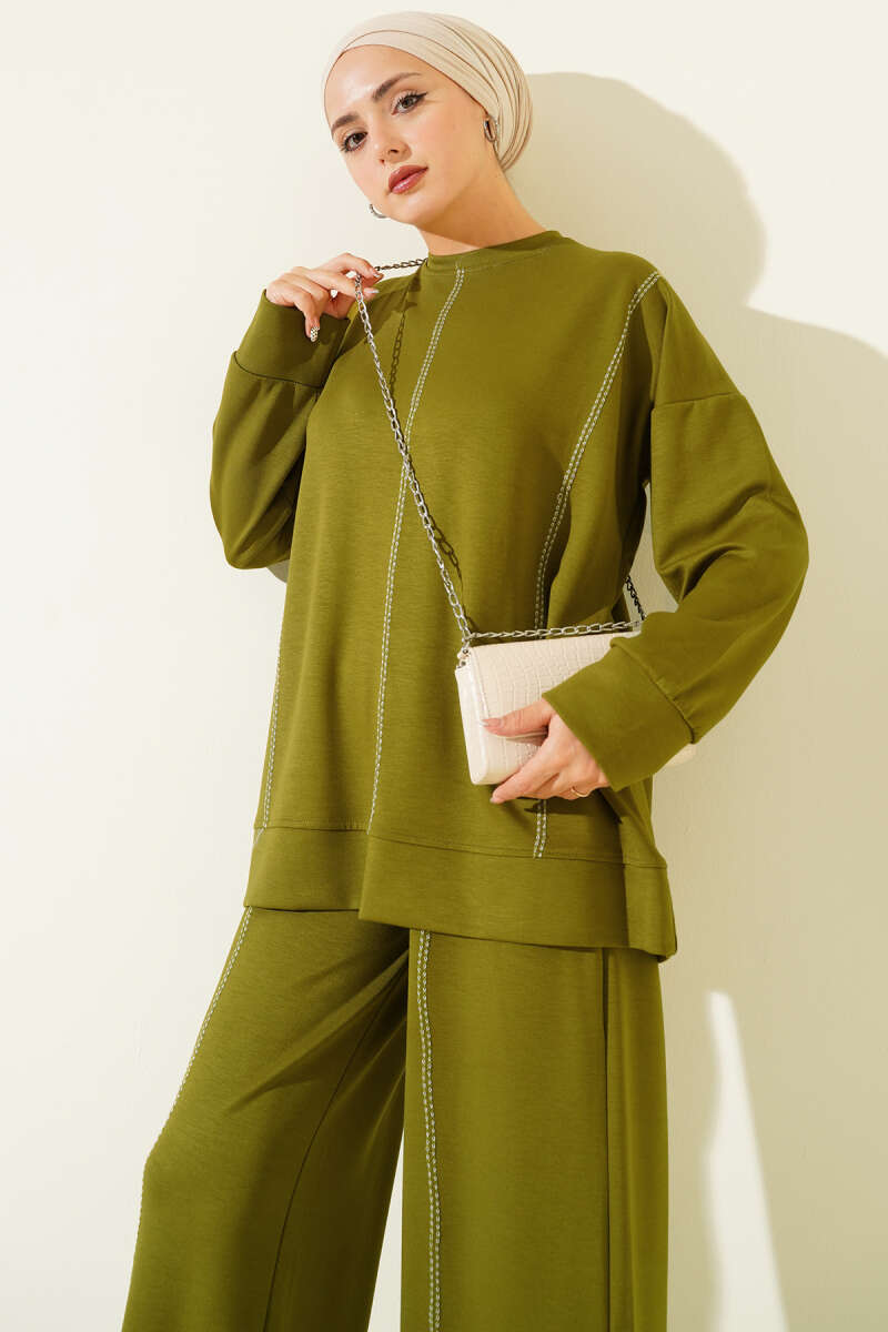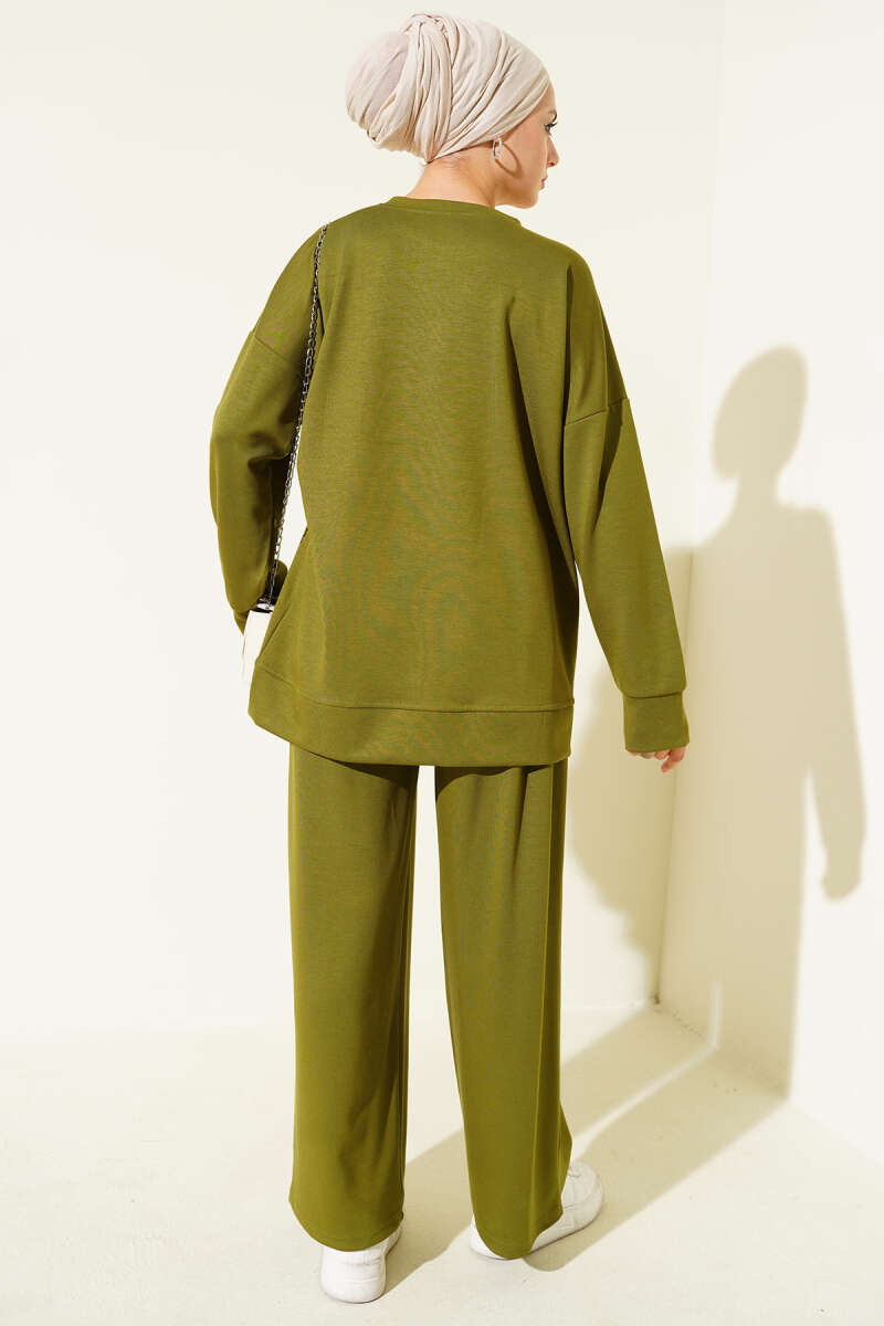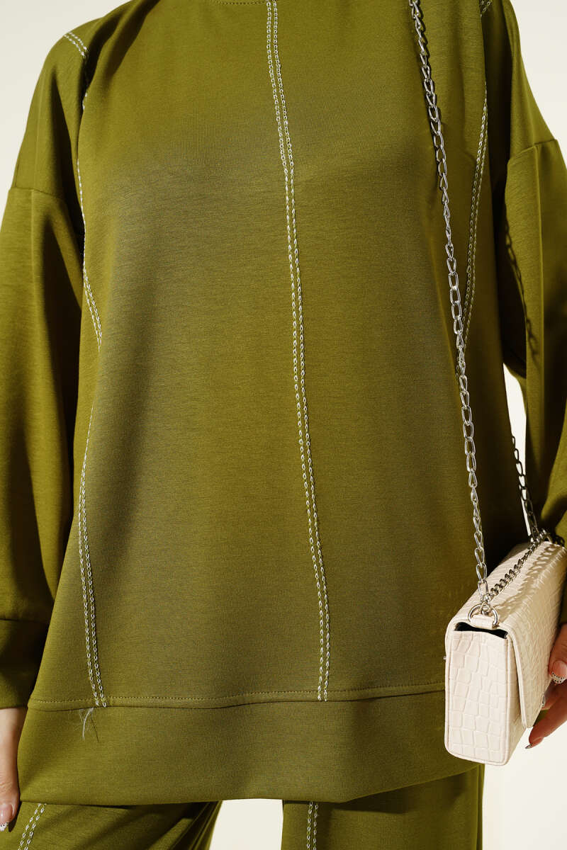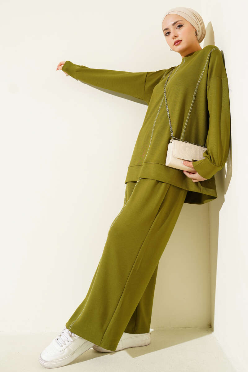 Asimetrik Kesim Bisiklet Yaka İkili Takım Kestane