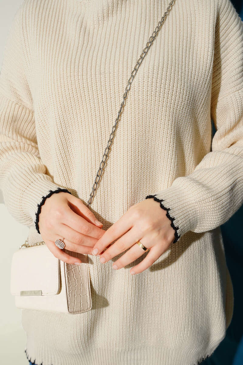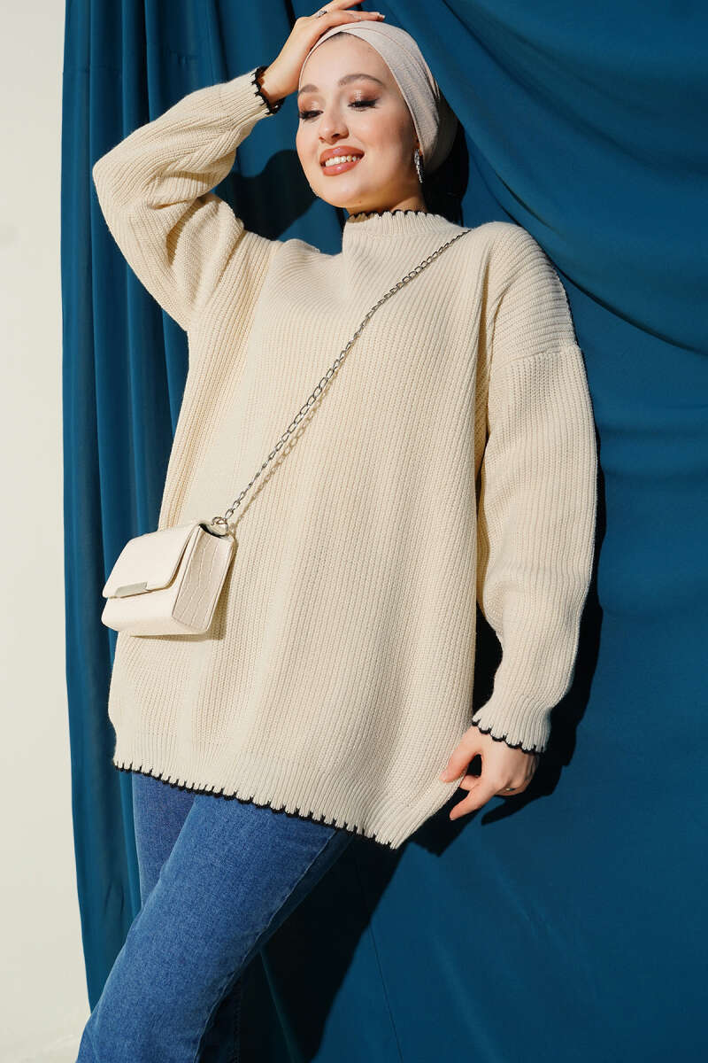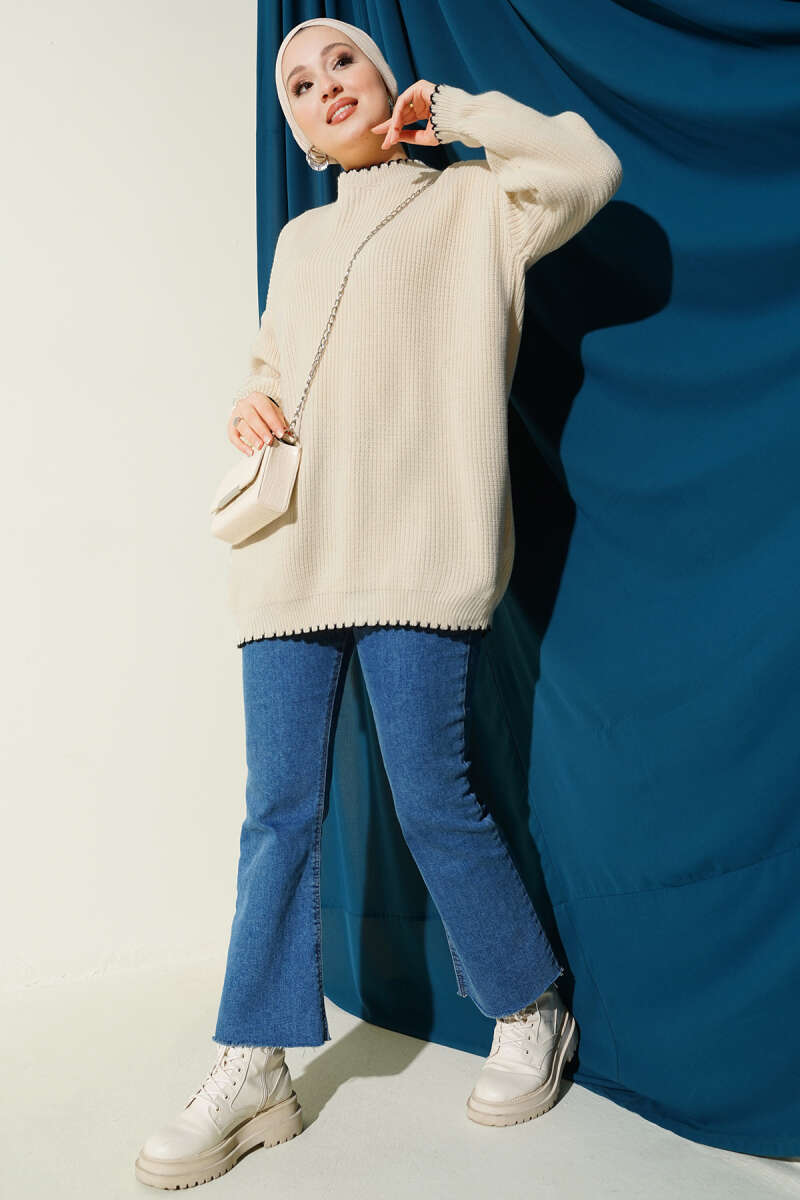 Salkım Kabartma Yumoş Triko Tunik Ekru
