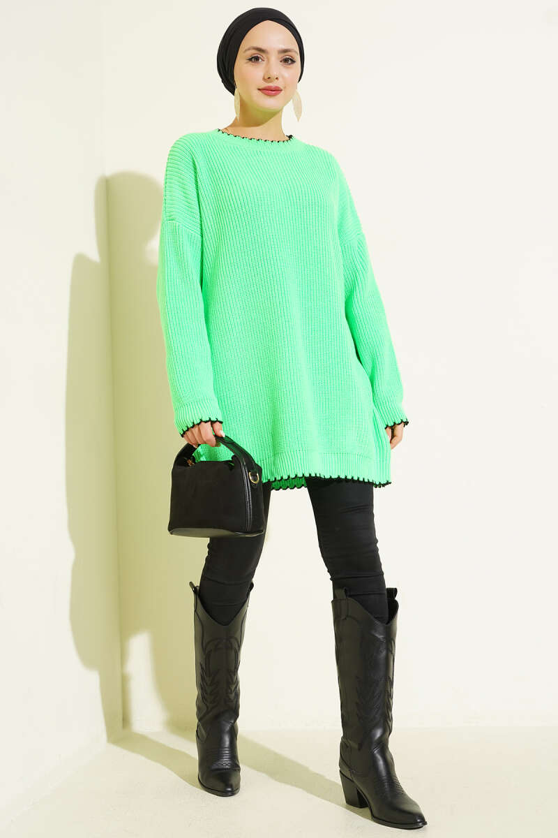 Çoban Dikiş Detaylı Triko Tunik Yeşil