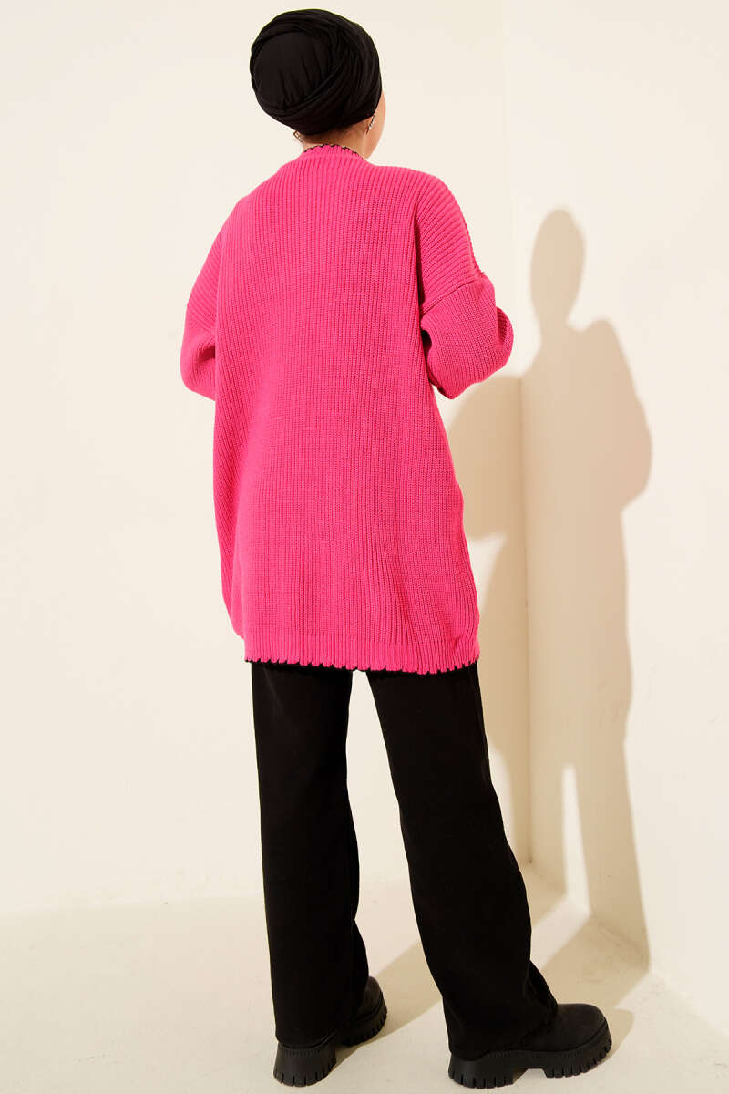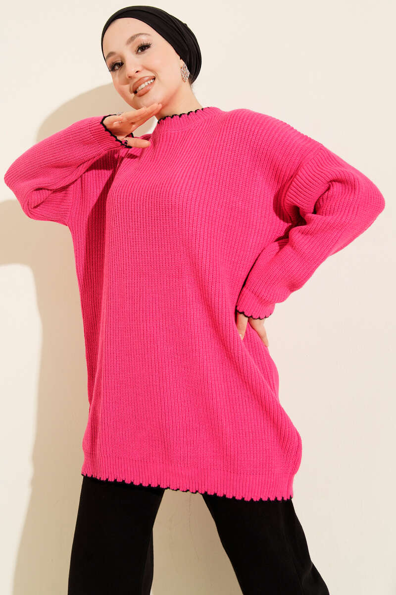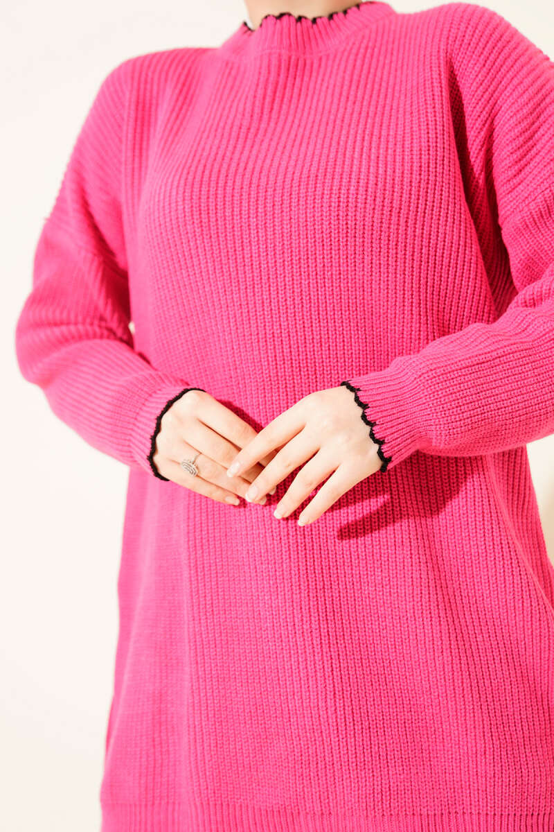 Çoban Dikiş Detaylı Triko Tunik Fuşya