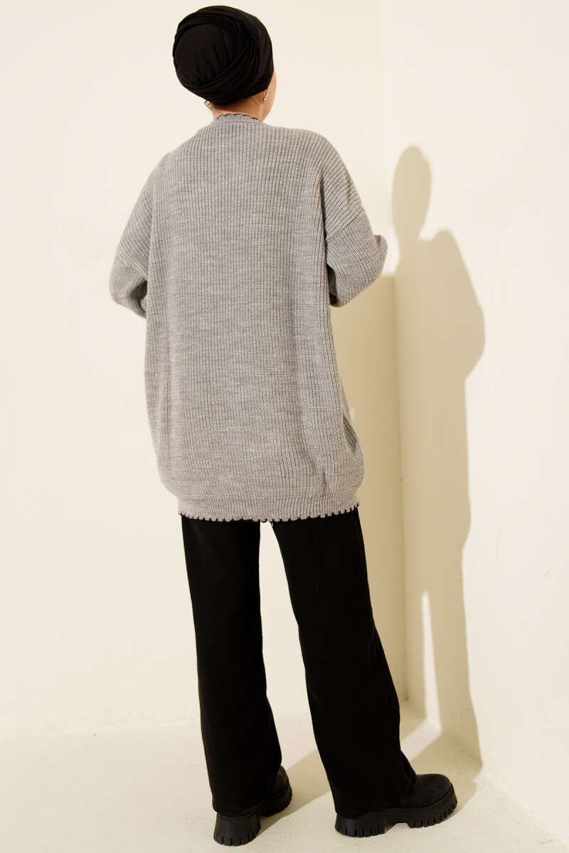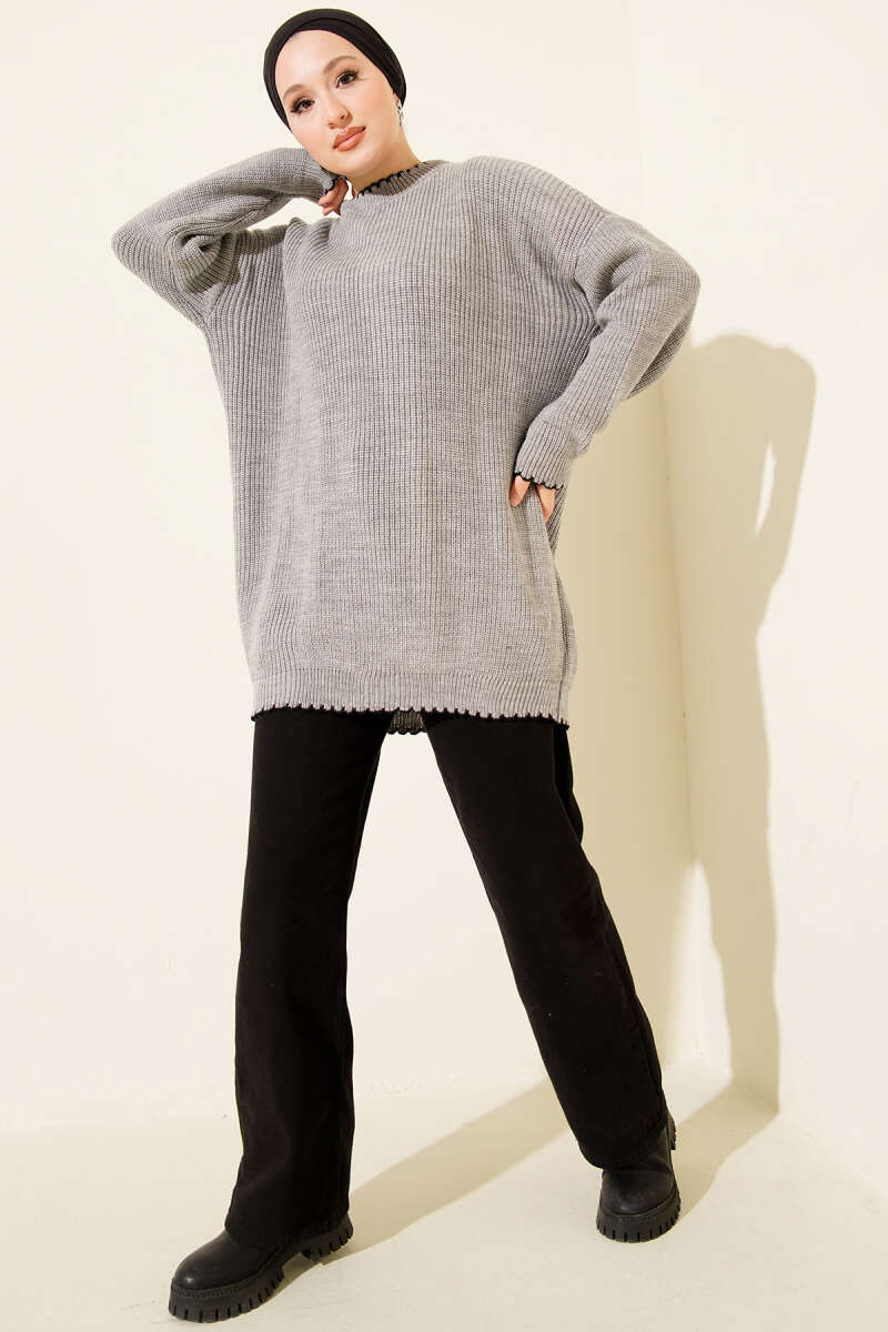 Çoban Dikiş Detaylı Triko Tunik Gri
