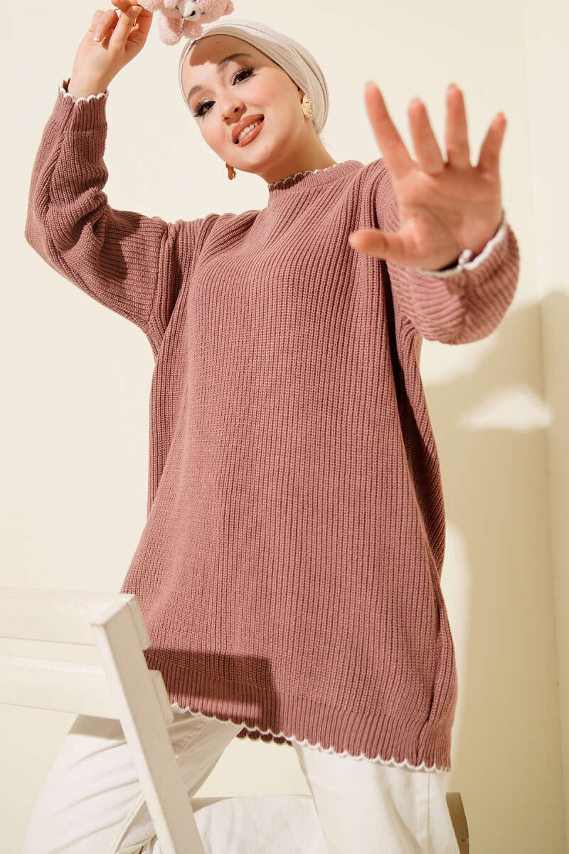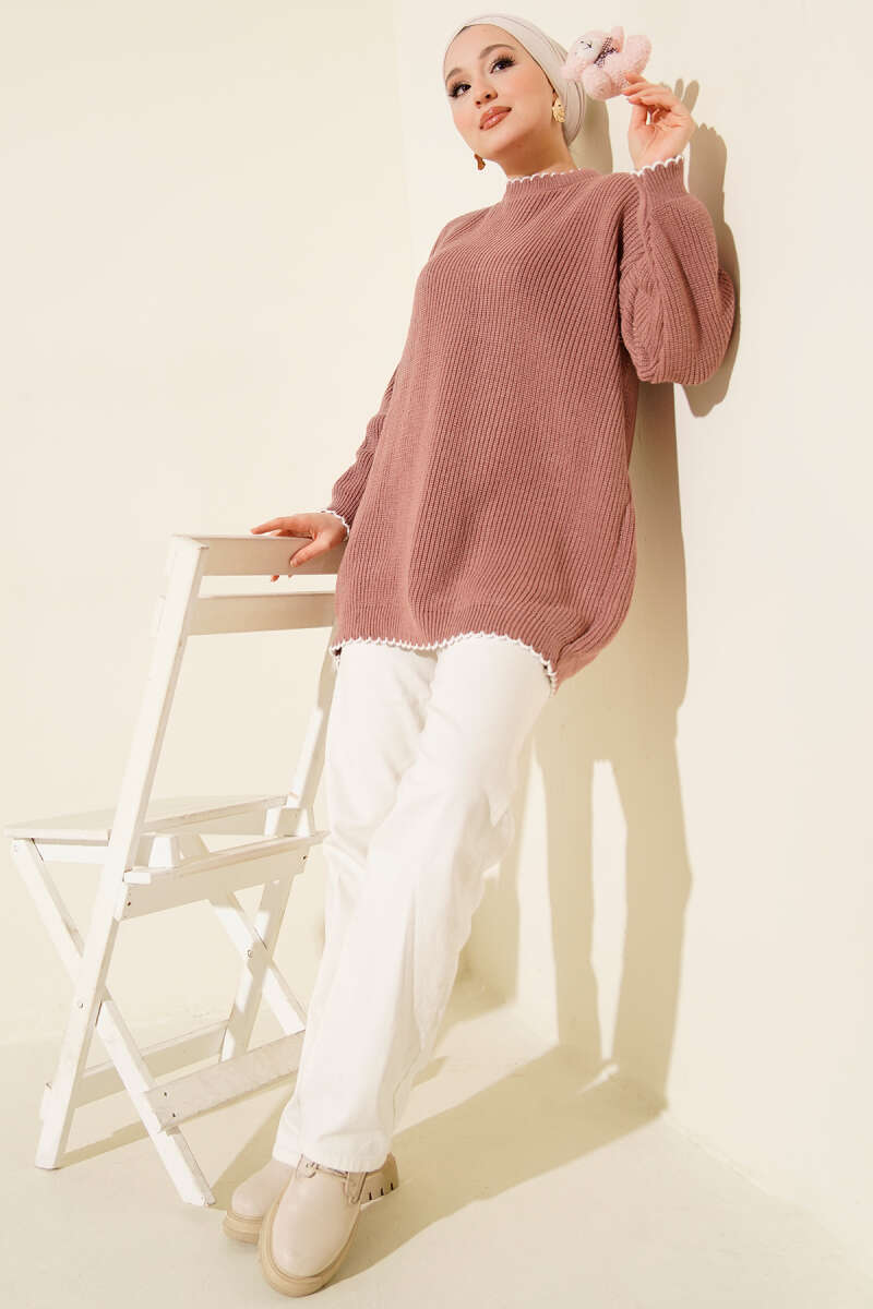 Çoban Dikiş Detaylı Triko Tunik Gül Kurusu