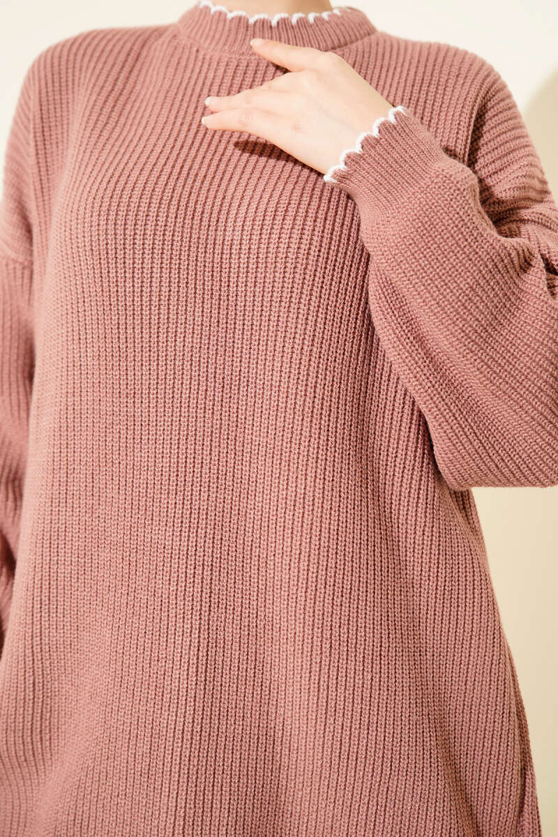 Çoban Dikiş Detaylı Triko Tunik Gül Kurusu