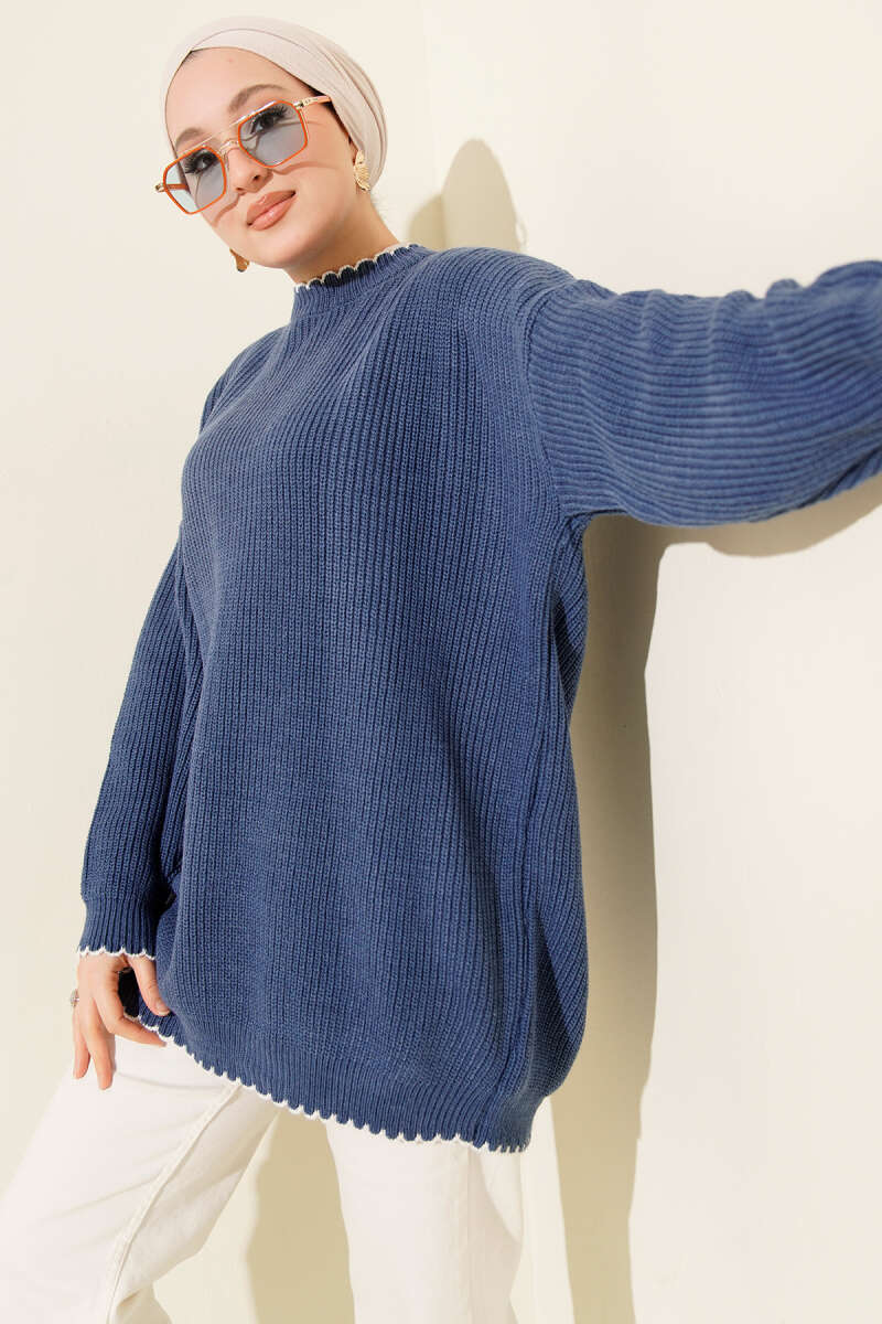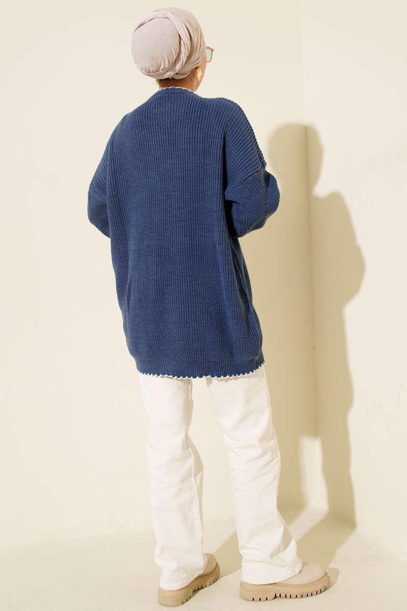 Çoban Dikiş Detaylı Triko Tunik İndigo