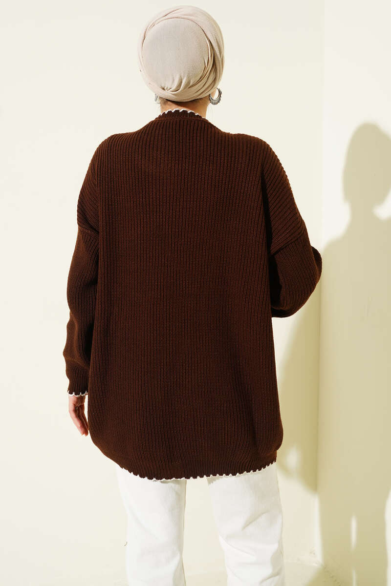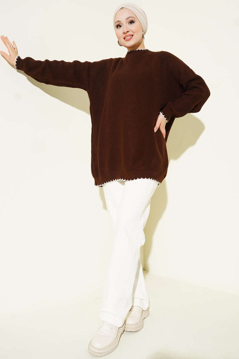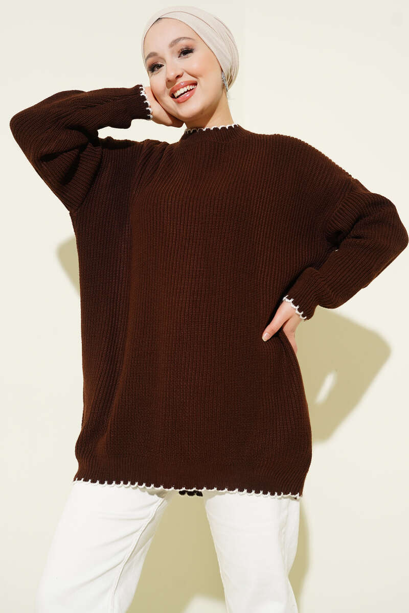 Ribana Görünümlü Triko Tunik Kahve