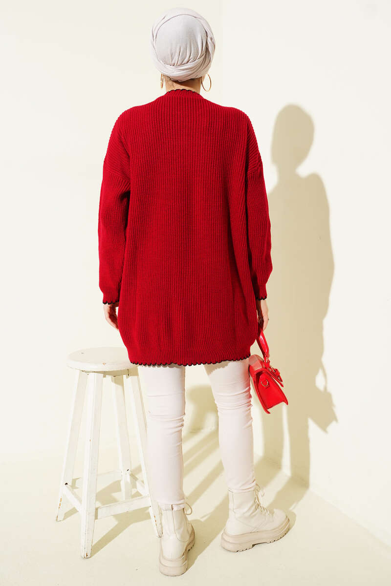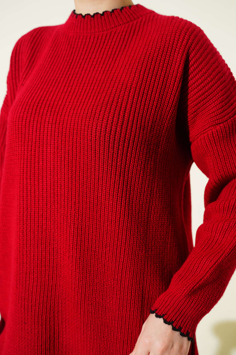 Çoban Dikiş Detaylı Triko Tunik Kırmızı