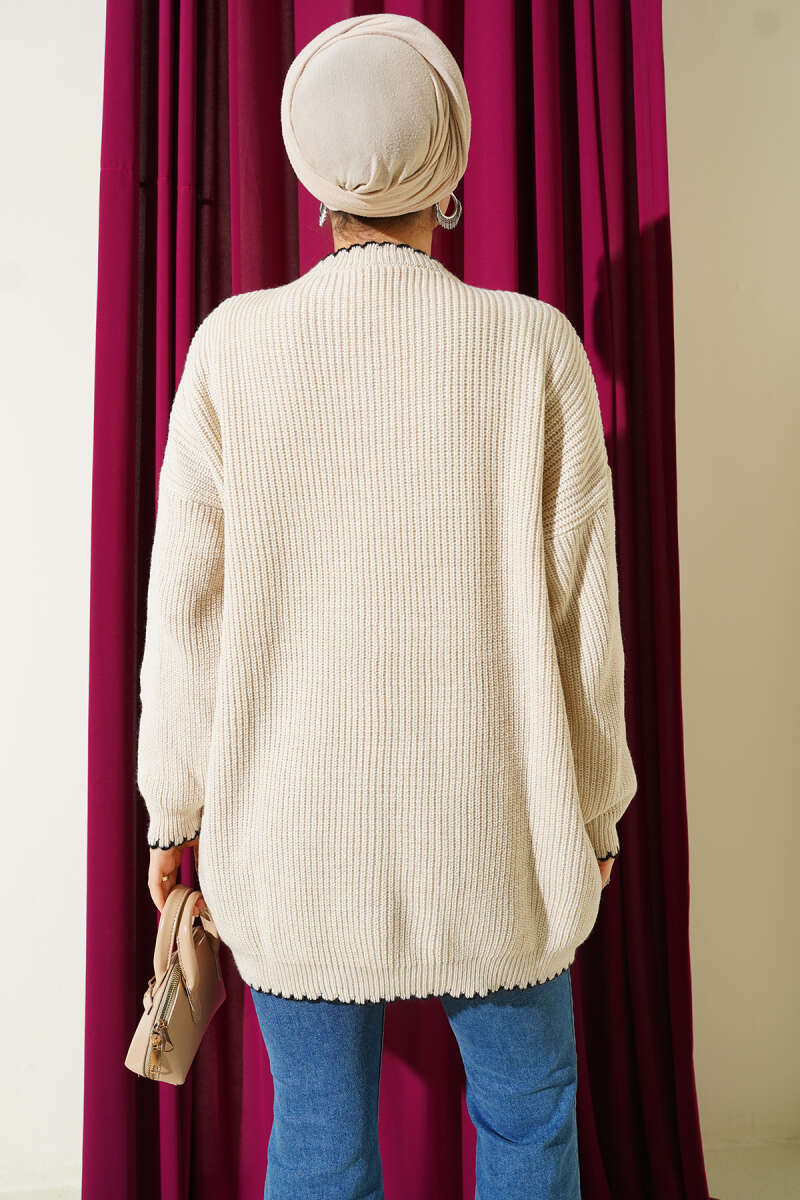 İp Bağlamalı Fitilli Kaşe Tunik Bej