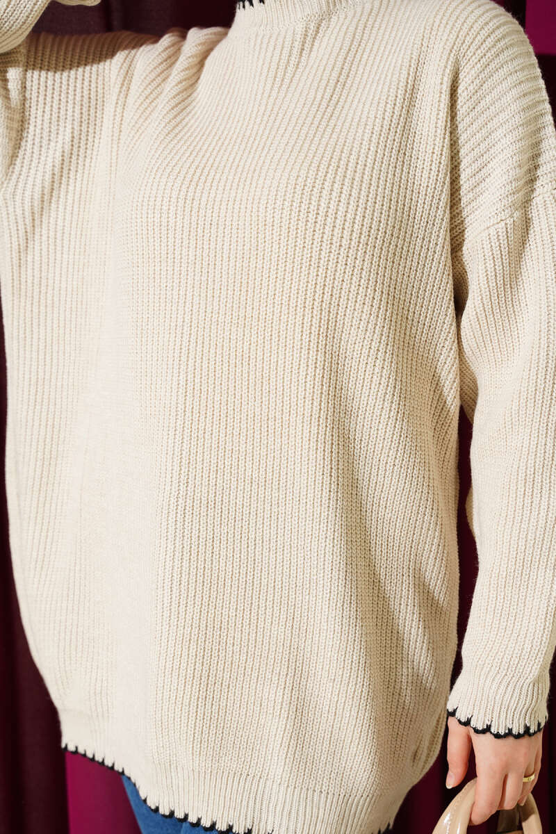 Balıkçı Yaka Balon Kol Triko Tunik Taş