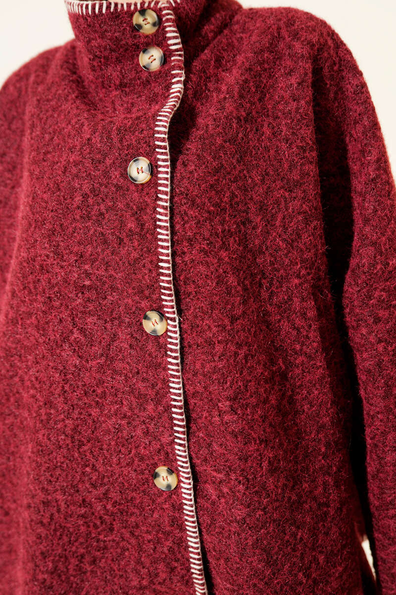 Çoban Dikişli Oversize Keçe Ceket Taş