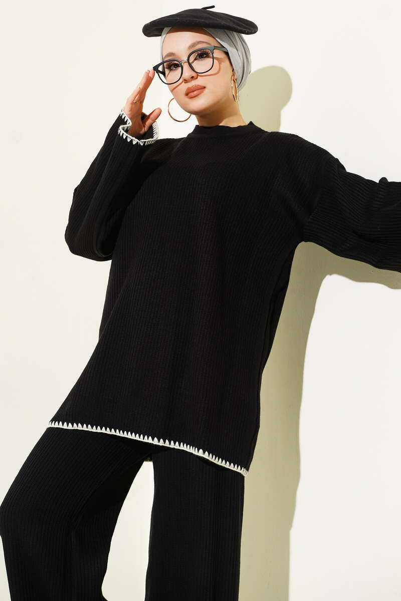 Çoban Dikişli Triko Tunik İkili Takım Nefti