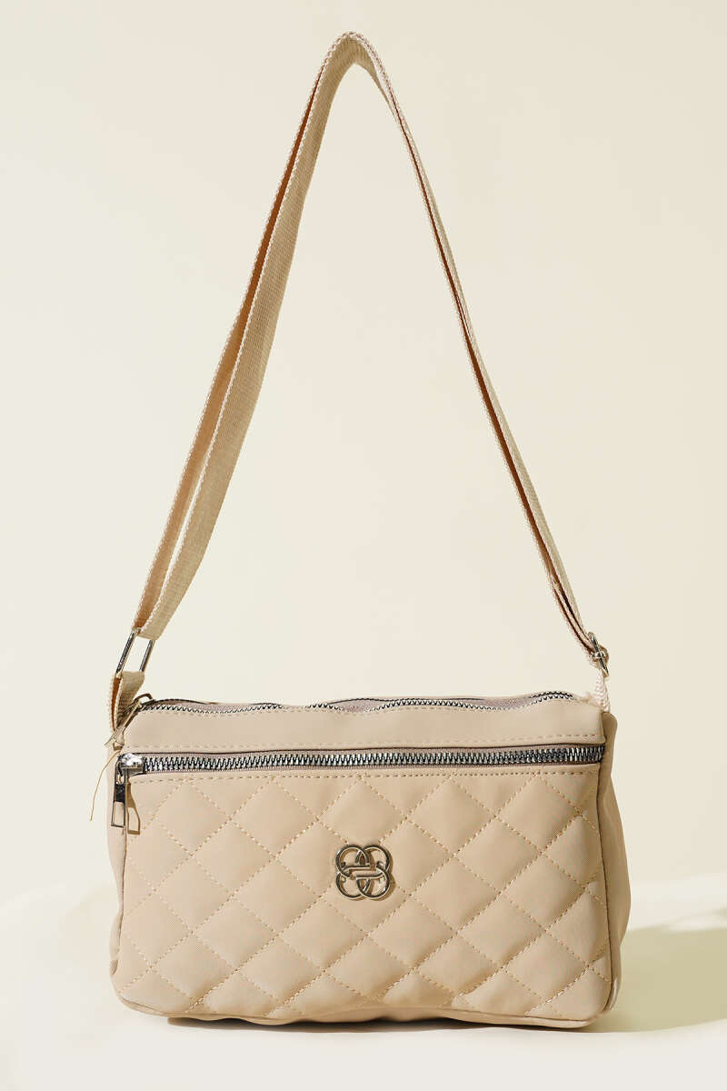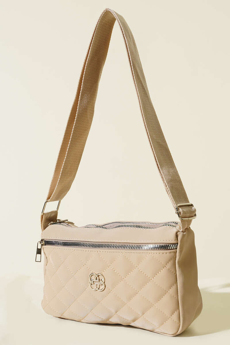 Çok Bölmeli Kapitone Omuz Çantası Bej