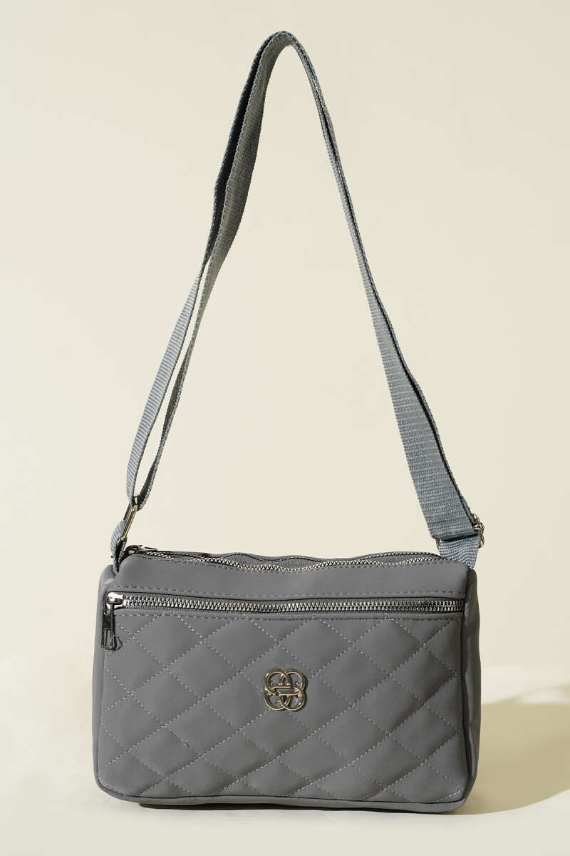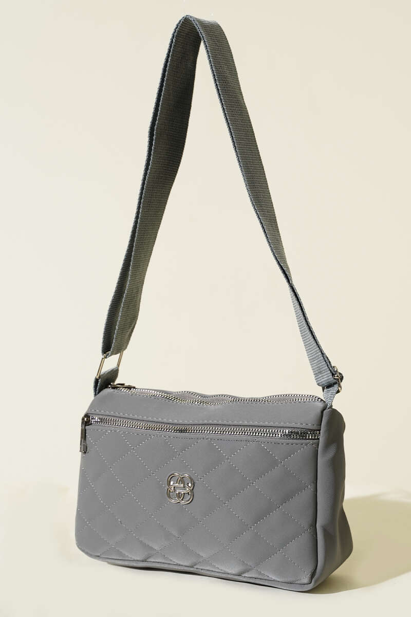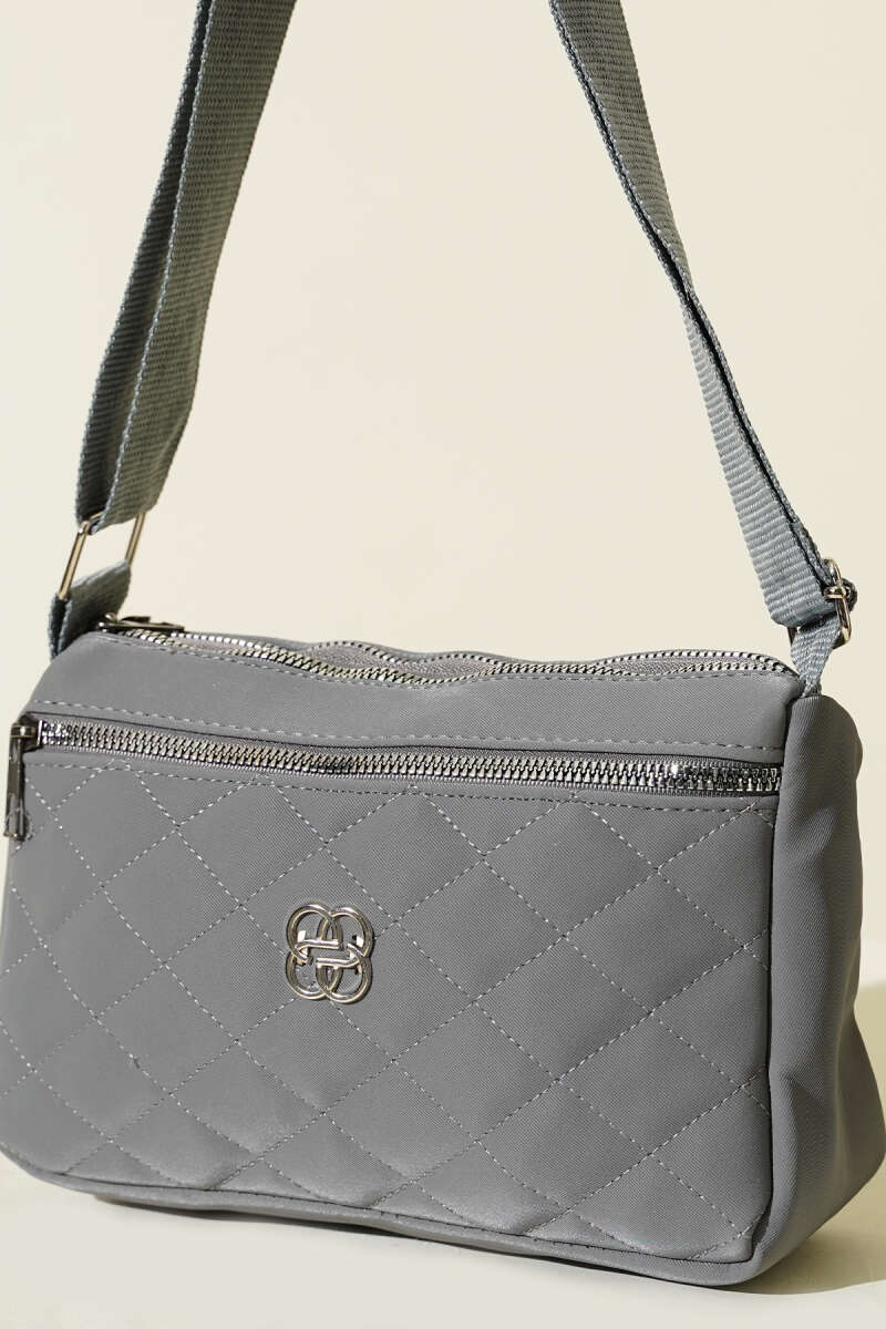 Çok Bölmeli Kapitone Omuz Çantası Füme