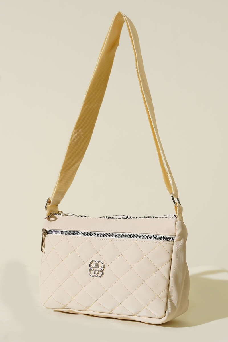 Çok Bölmeli Kapitone Omuz Çantası Krem