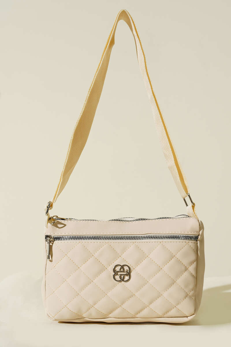 Çok Bölmeli Kapitone Omuz Çantası Krem