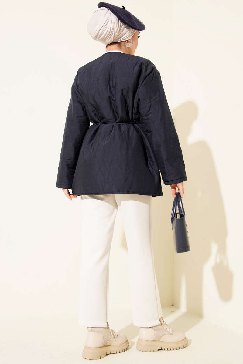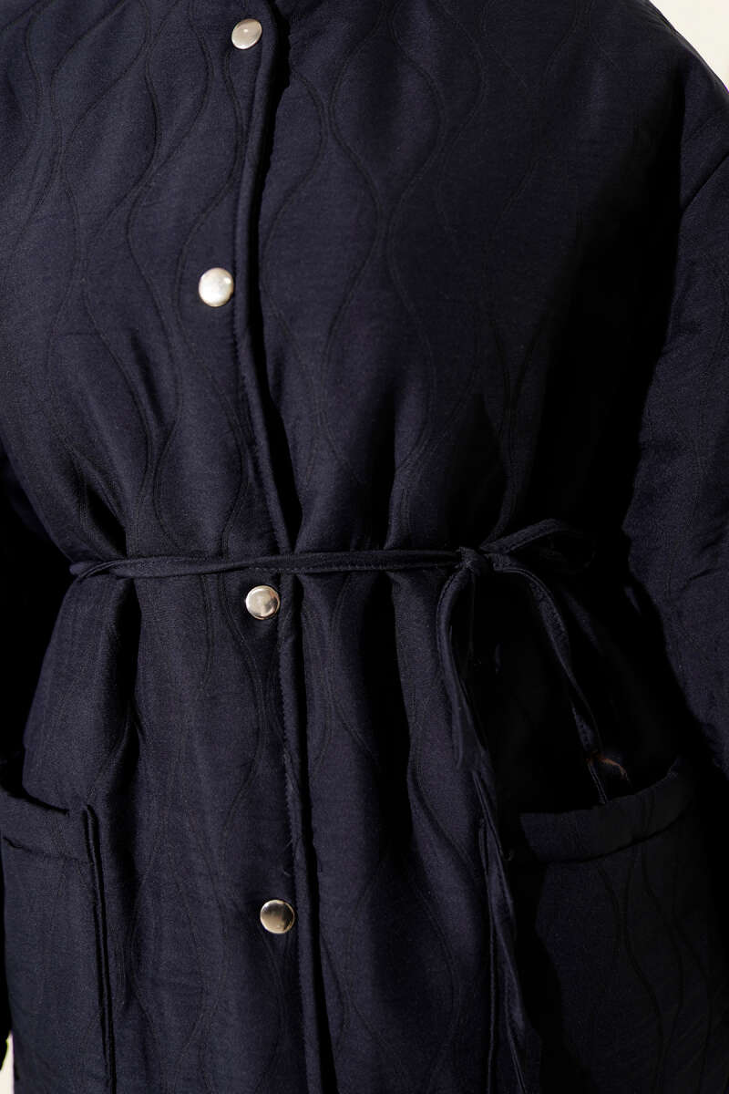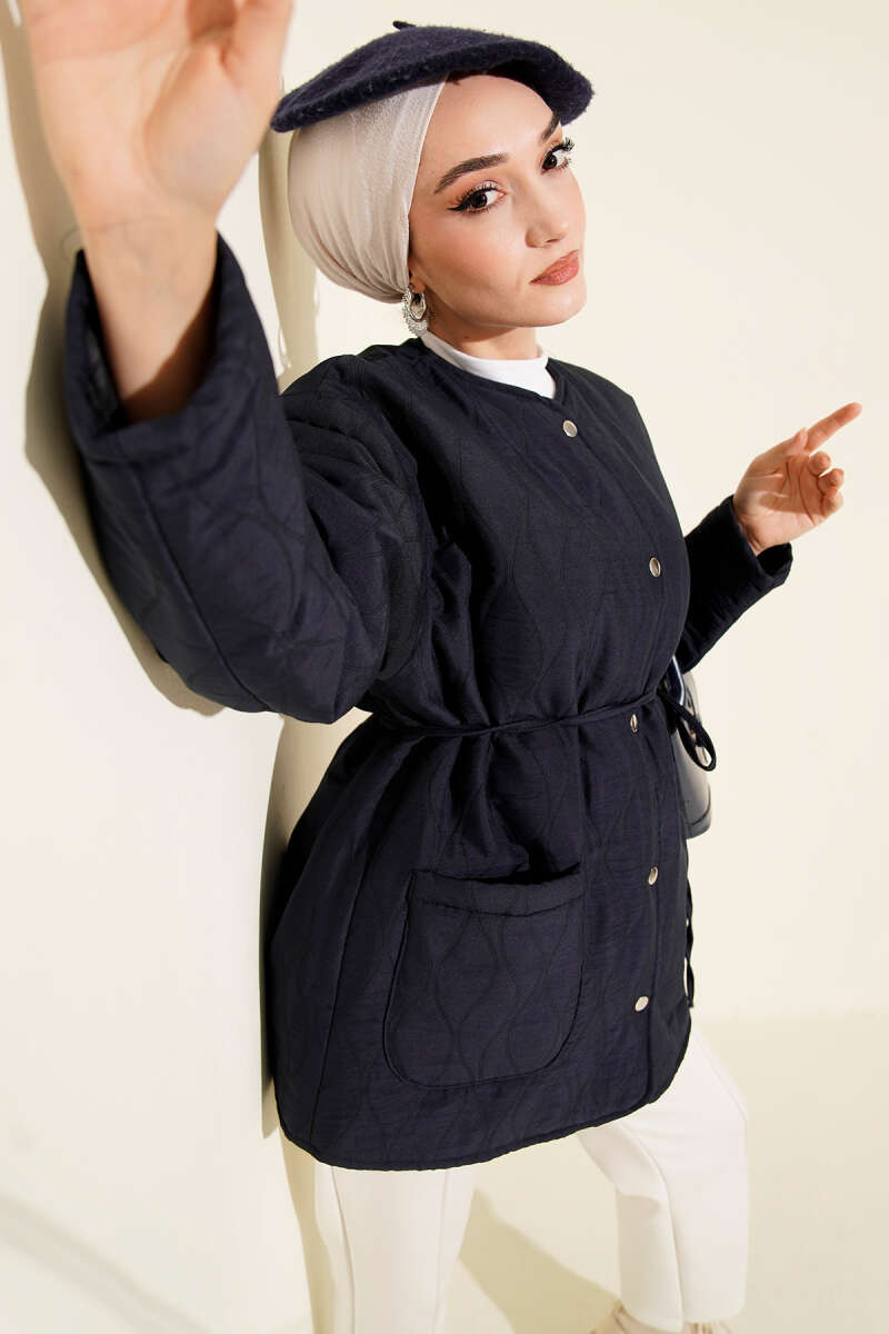 Dalga Desen Çıtçıtlı Ceket Lacivert