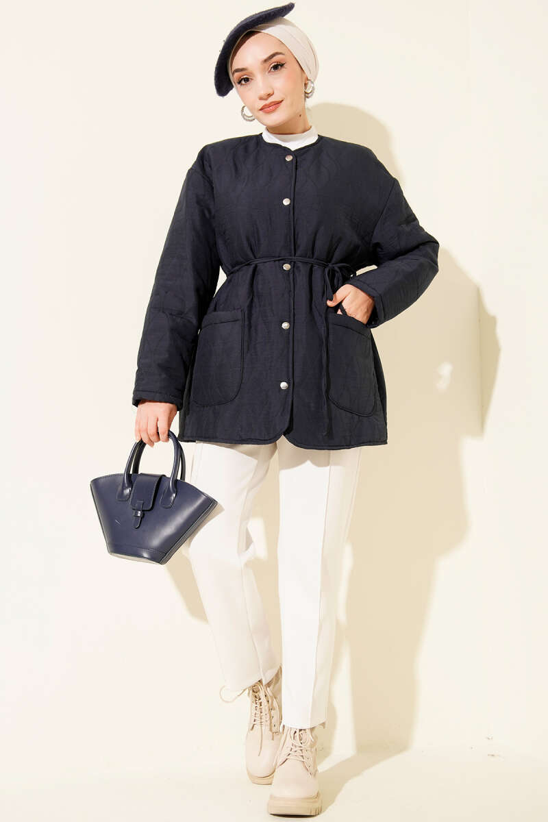 Pelerinli Gold Düğmeli Scuba Ceket Lacivert