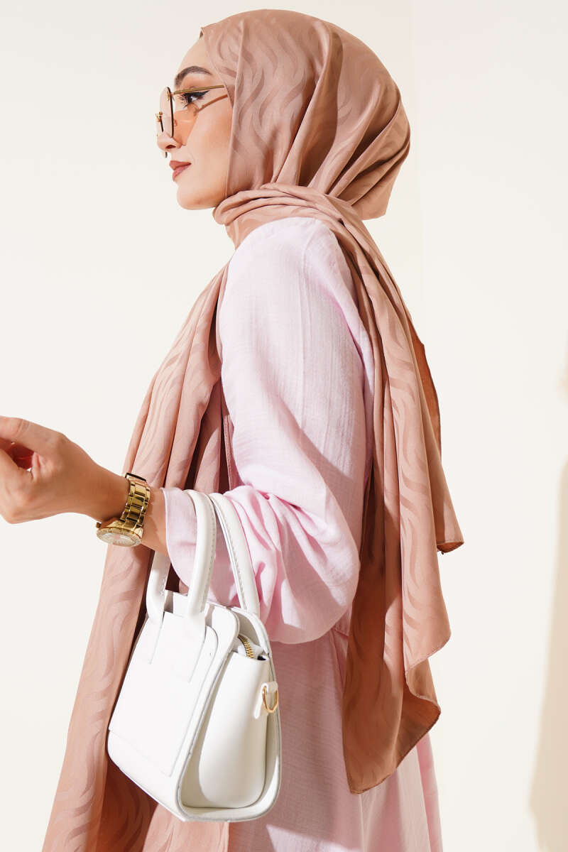 Mini Boncuk Detaylı Eşarp Pudra