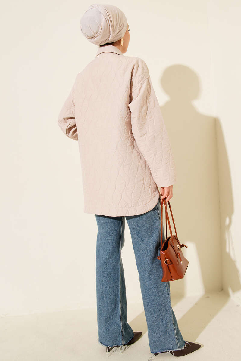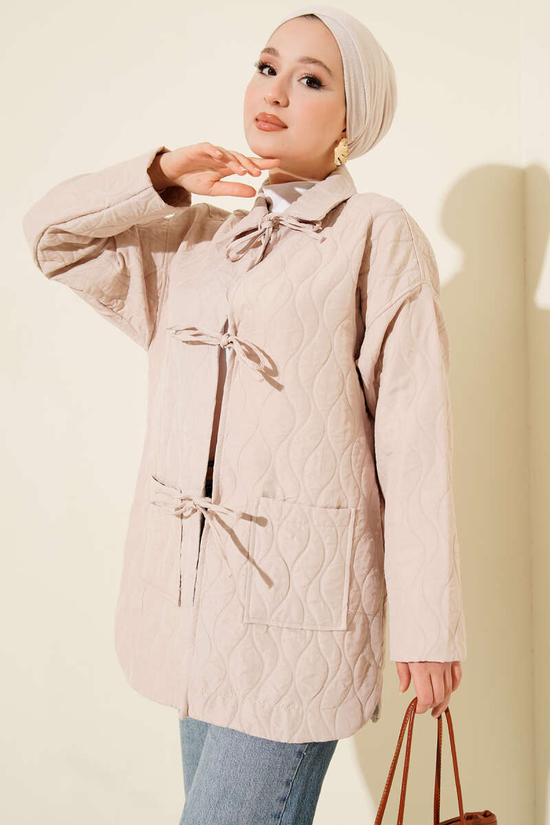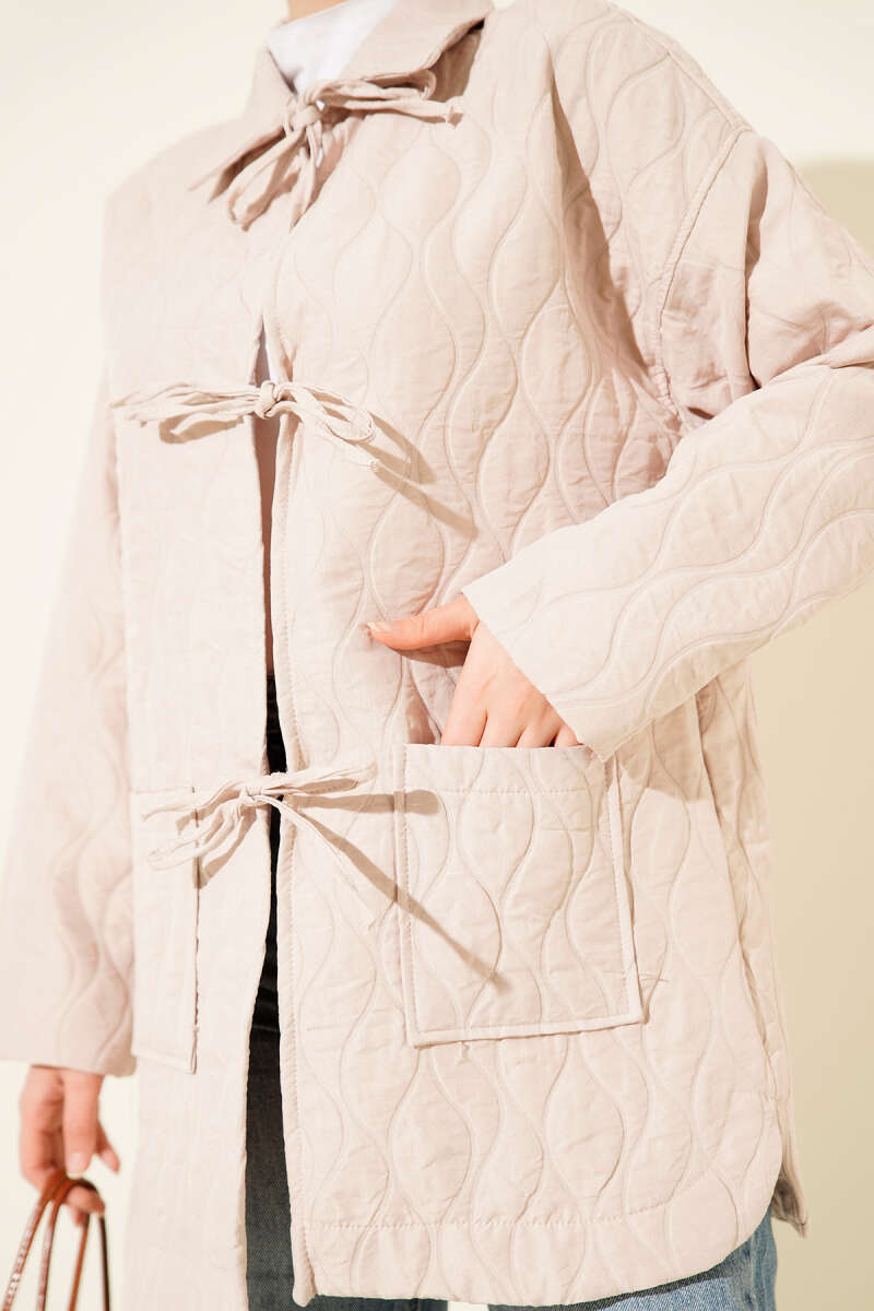 Dalga Desen Kapitone Ceket Bej