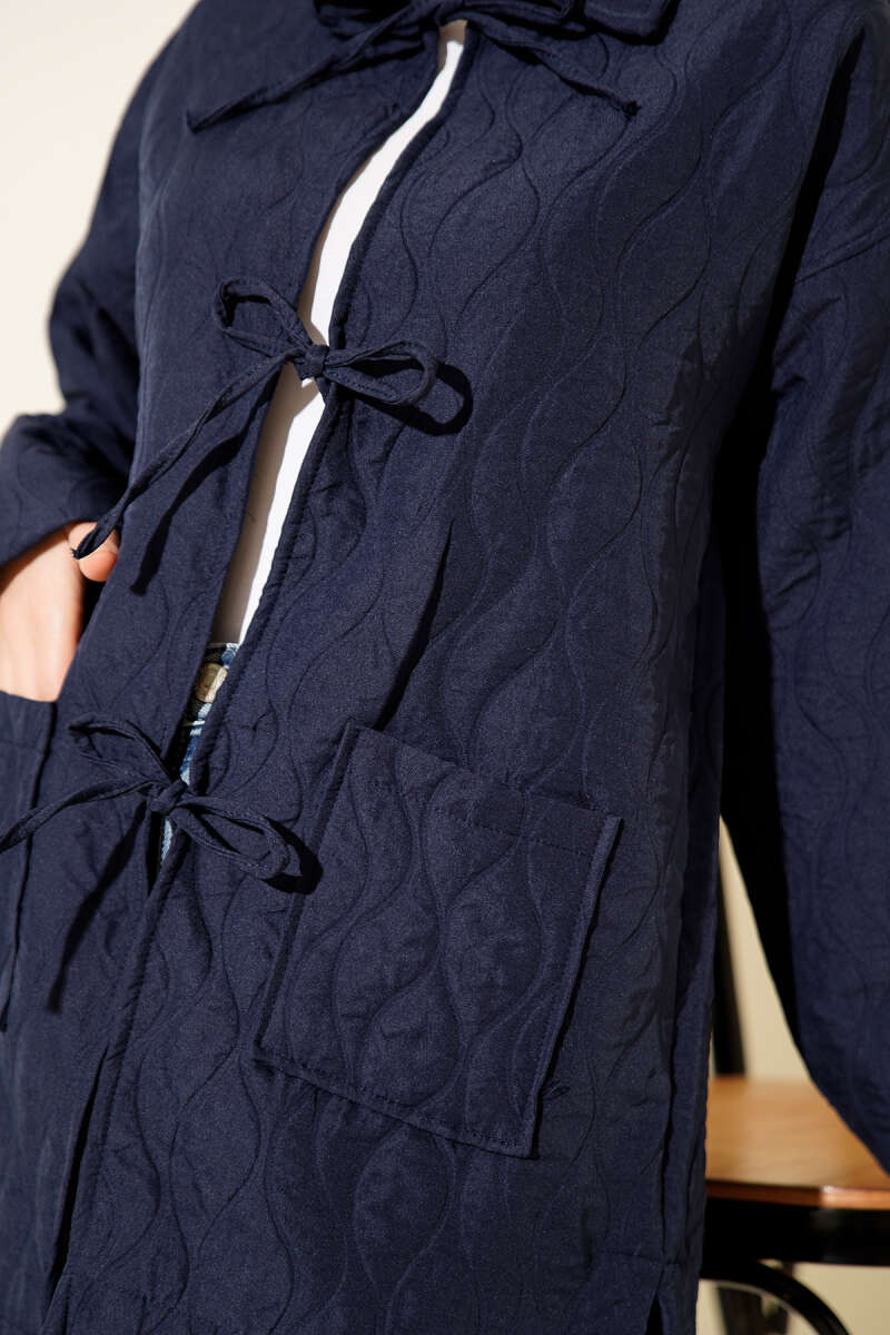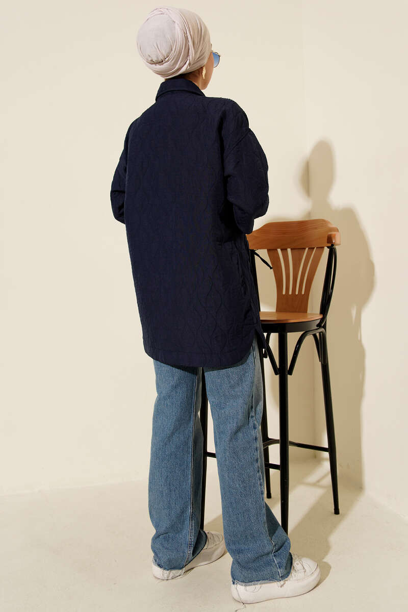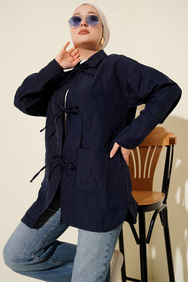 Basic Çift Cepli Uzun Triko Hırka İndigo