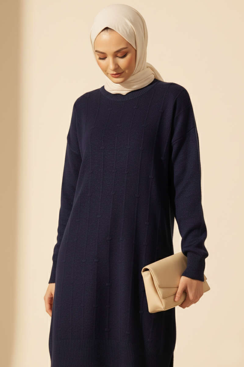 Bel Bağcıklı Bisiklet Yaka Triko Elbise Füme