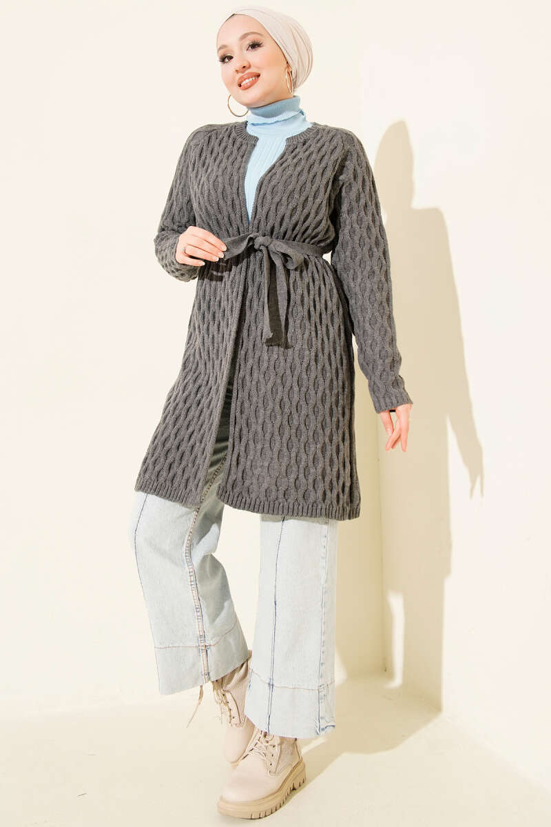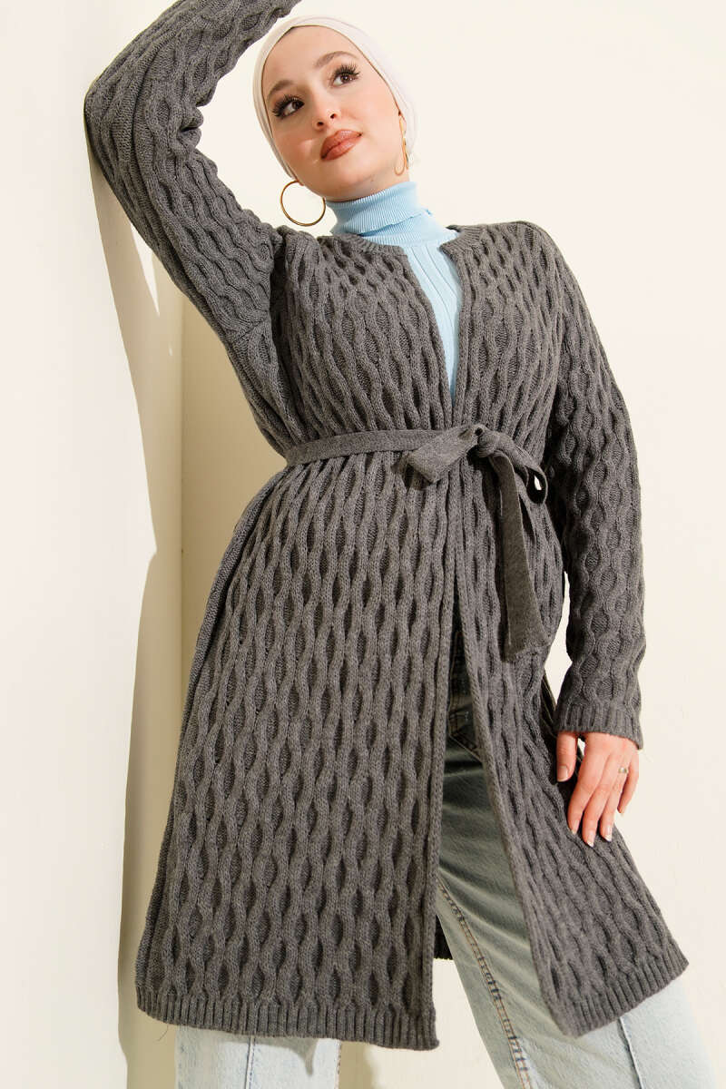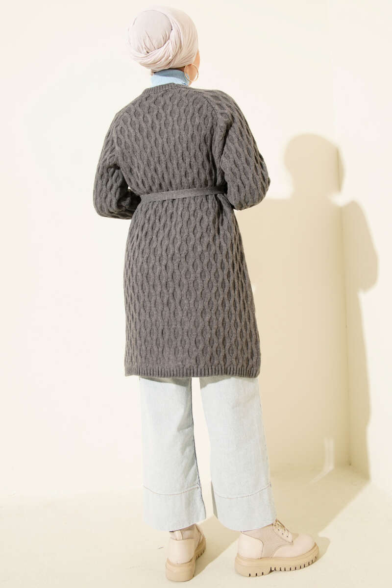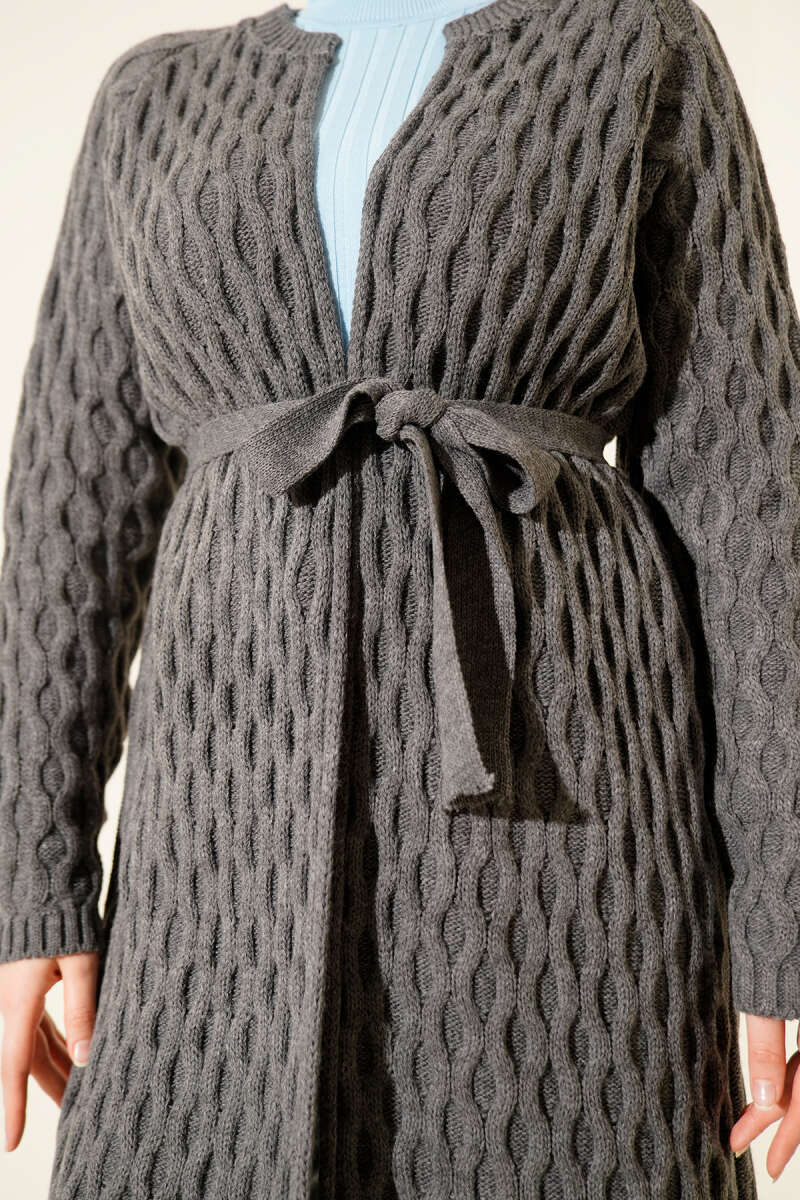 Salaş Kuşaklı Triko Elbise Füme