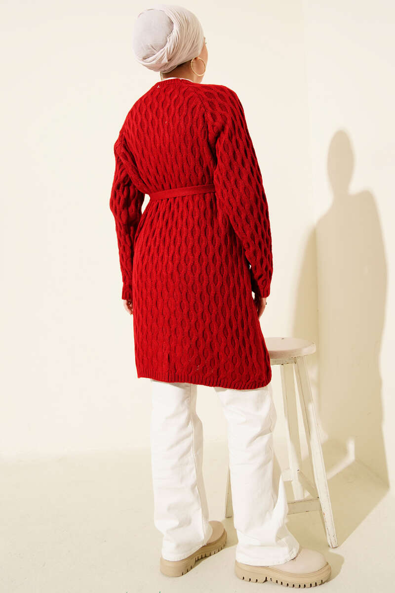 Bilek Düğmeli Fitilli Triko Tunik Kahve