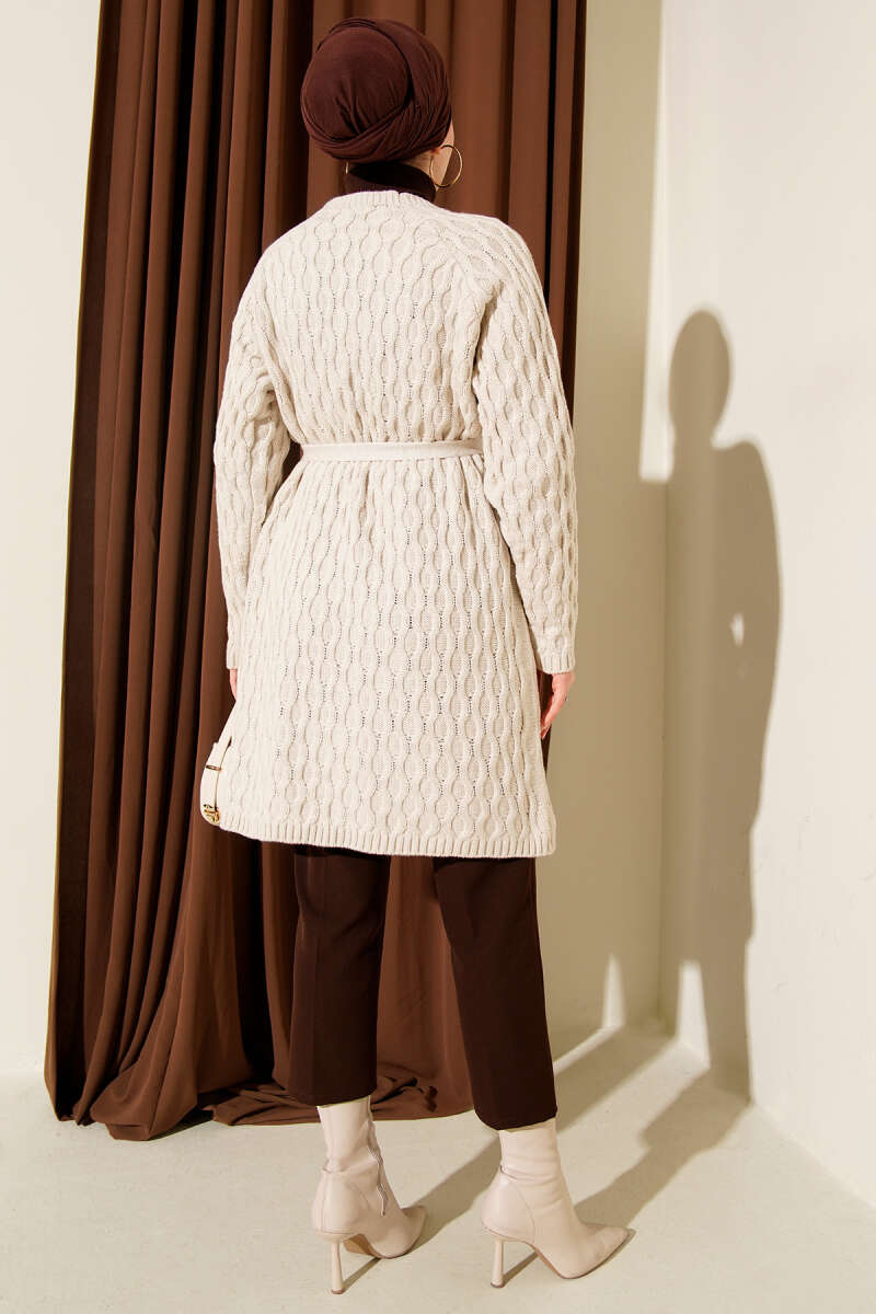 Damla Kabartmalı Triko Hırka Vizon