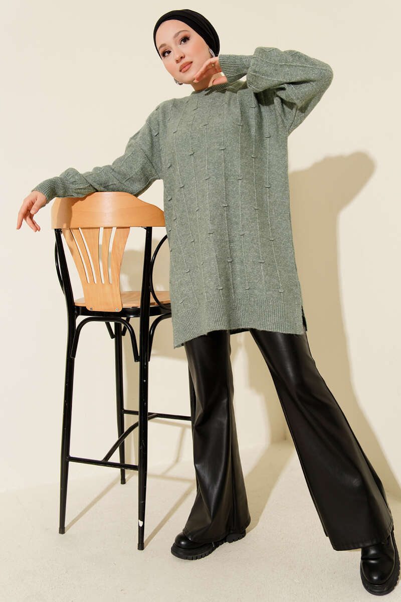 Arma Detaylı Uzun Tunik Zümrüt Yeşili