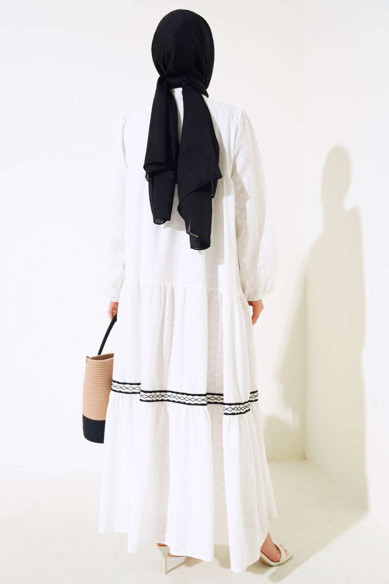 Kabartma Desenli Triko Elbise Ekru
