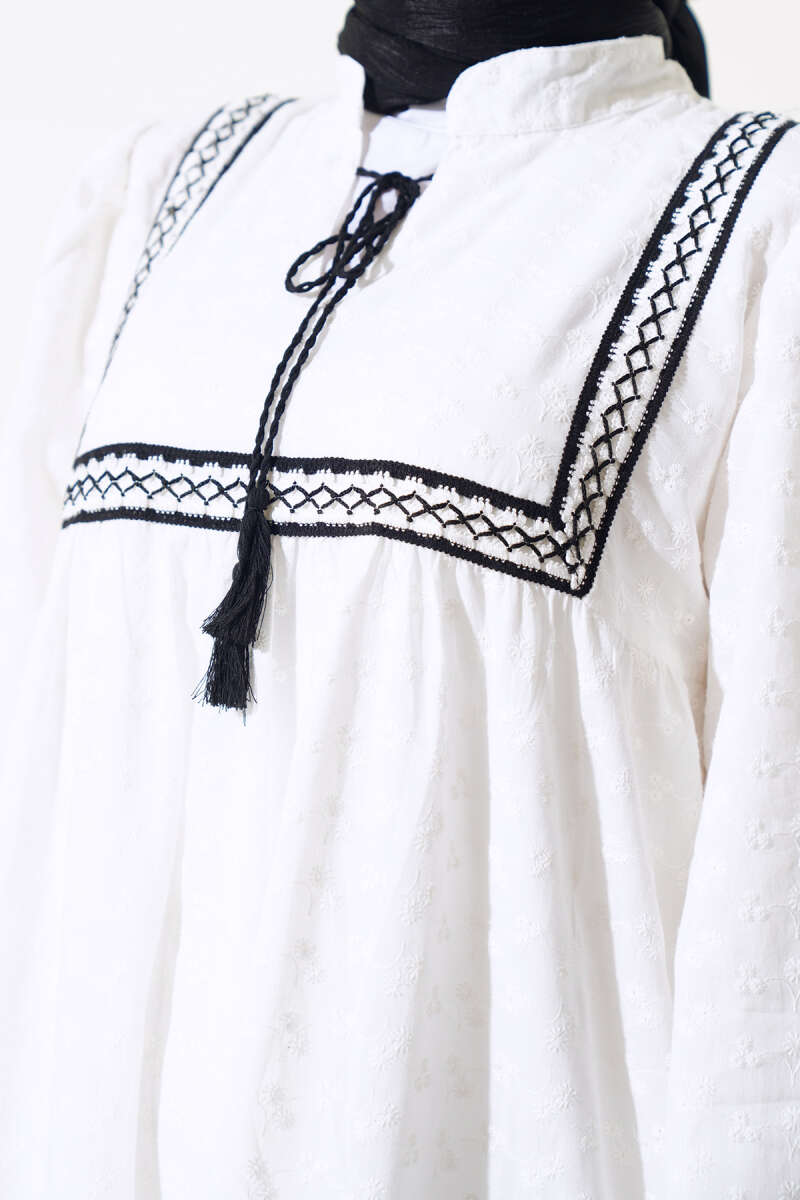 Kare Yaka Bürümcük Bluz Ekru