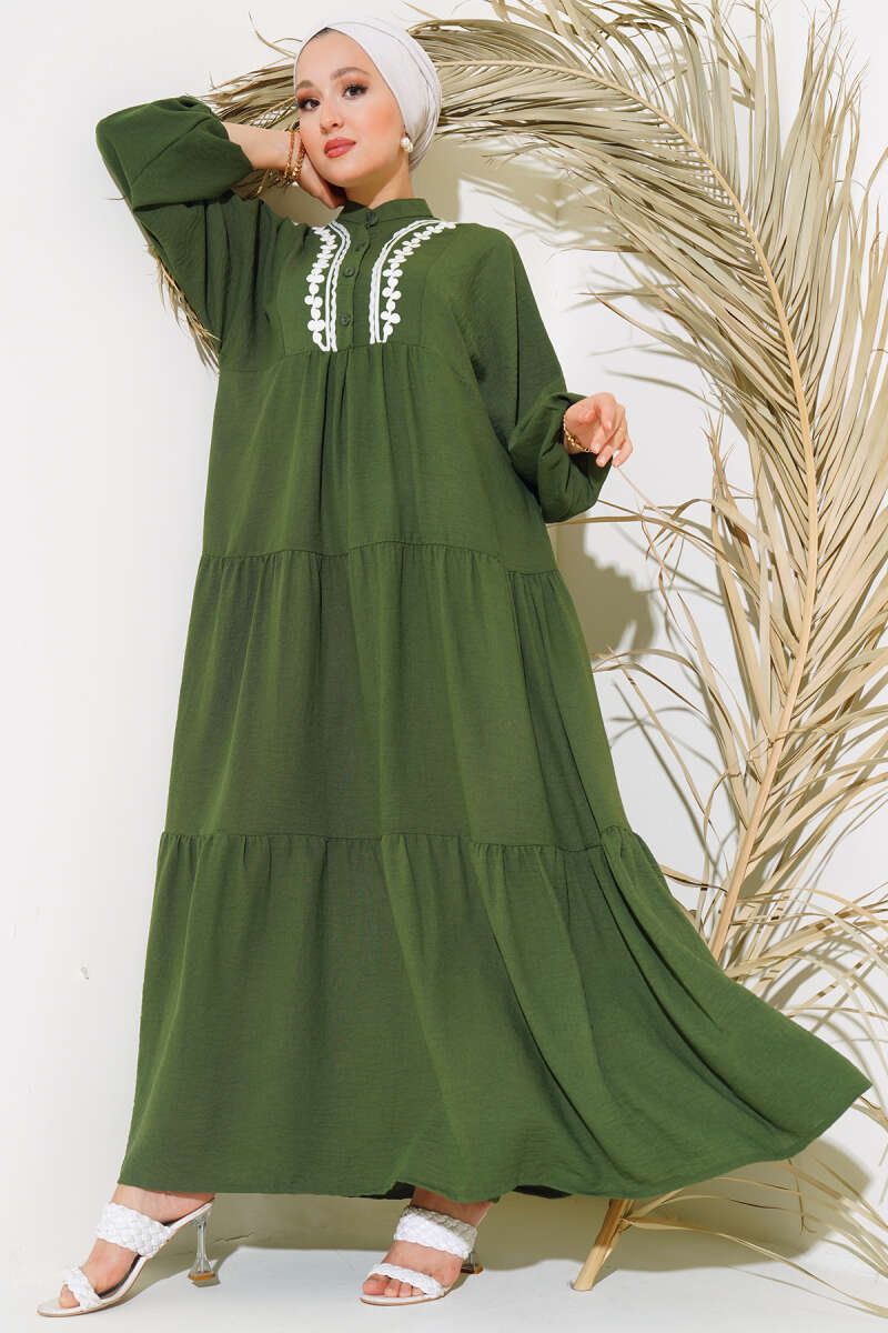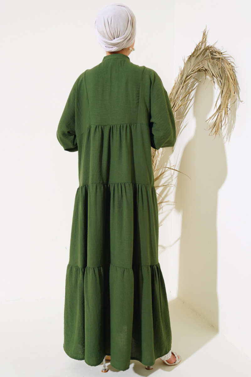 Bel Lastikli Fermuarlı Tensel Elbise Haki