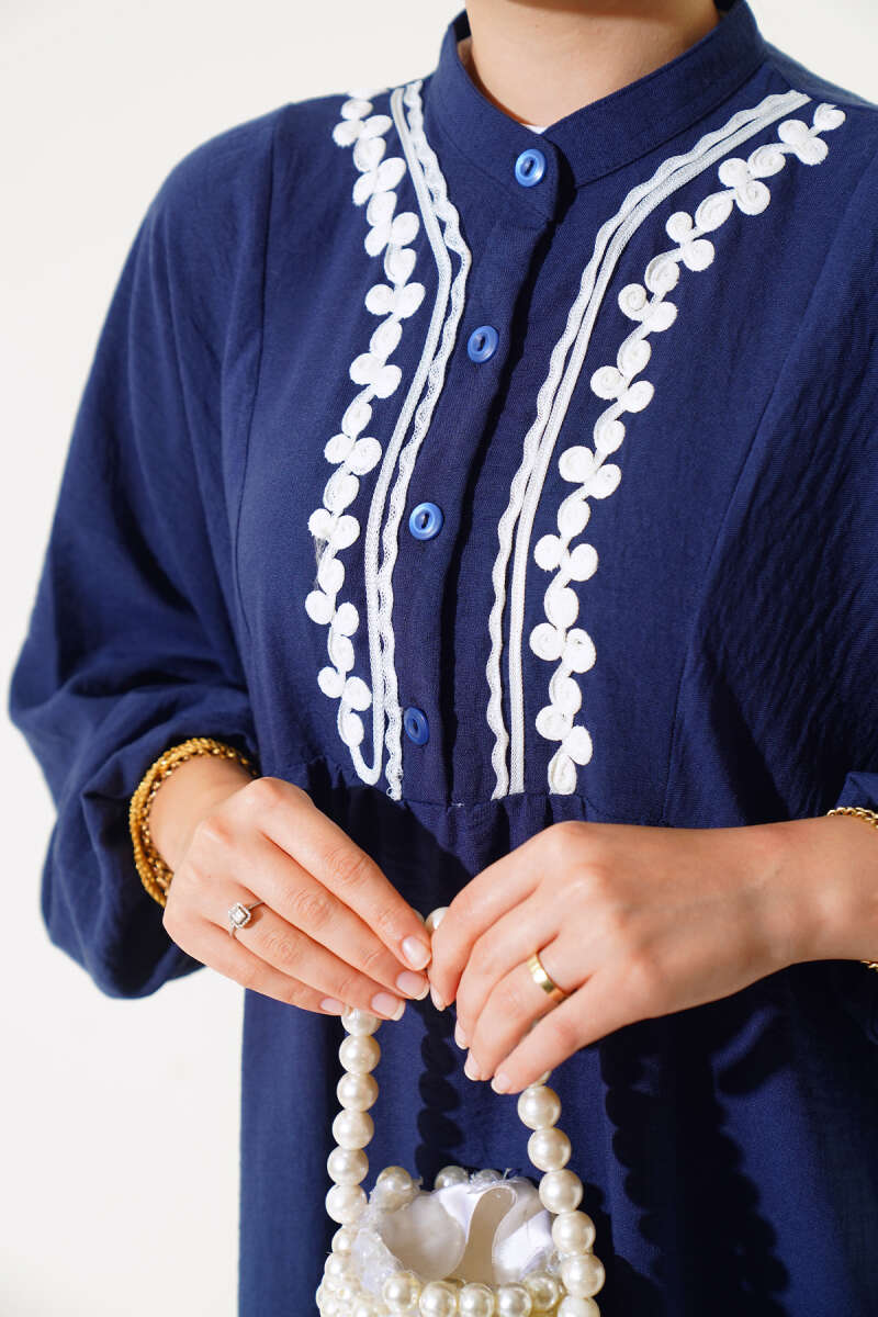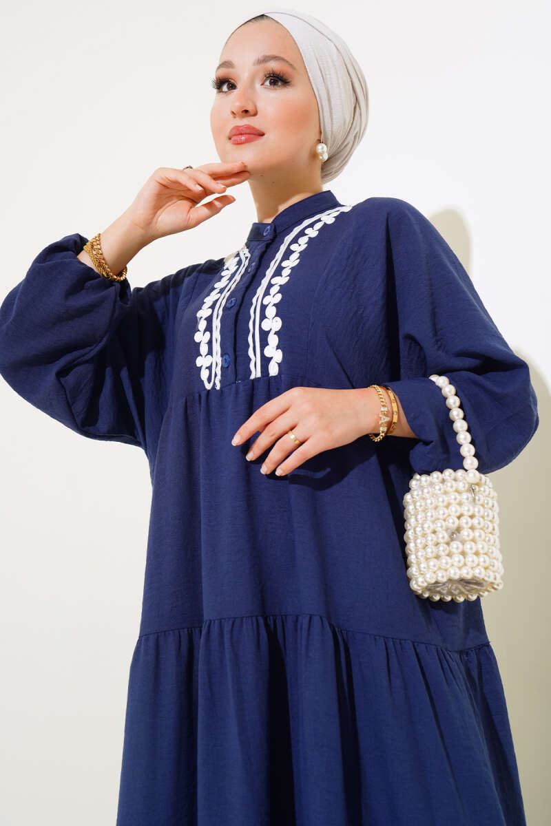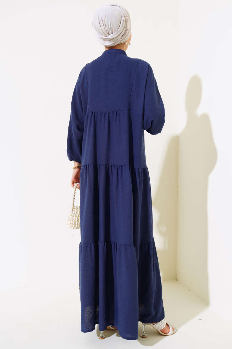 Dantel Detaylı Kat Kat Elbise Lacivert