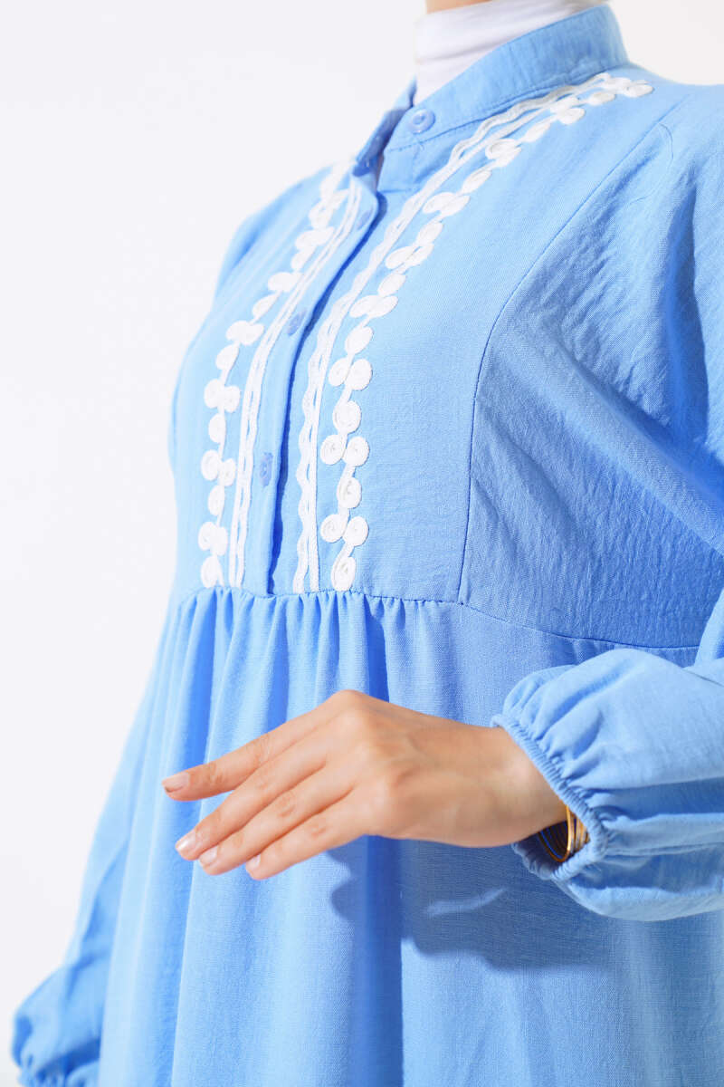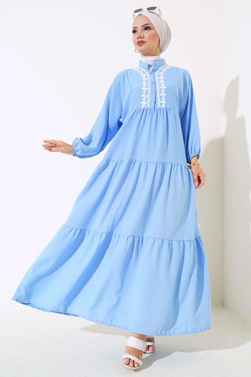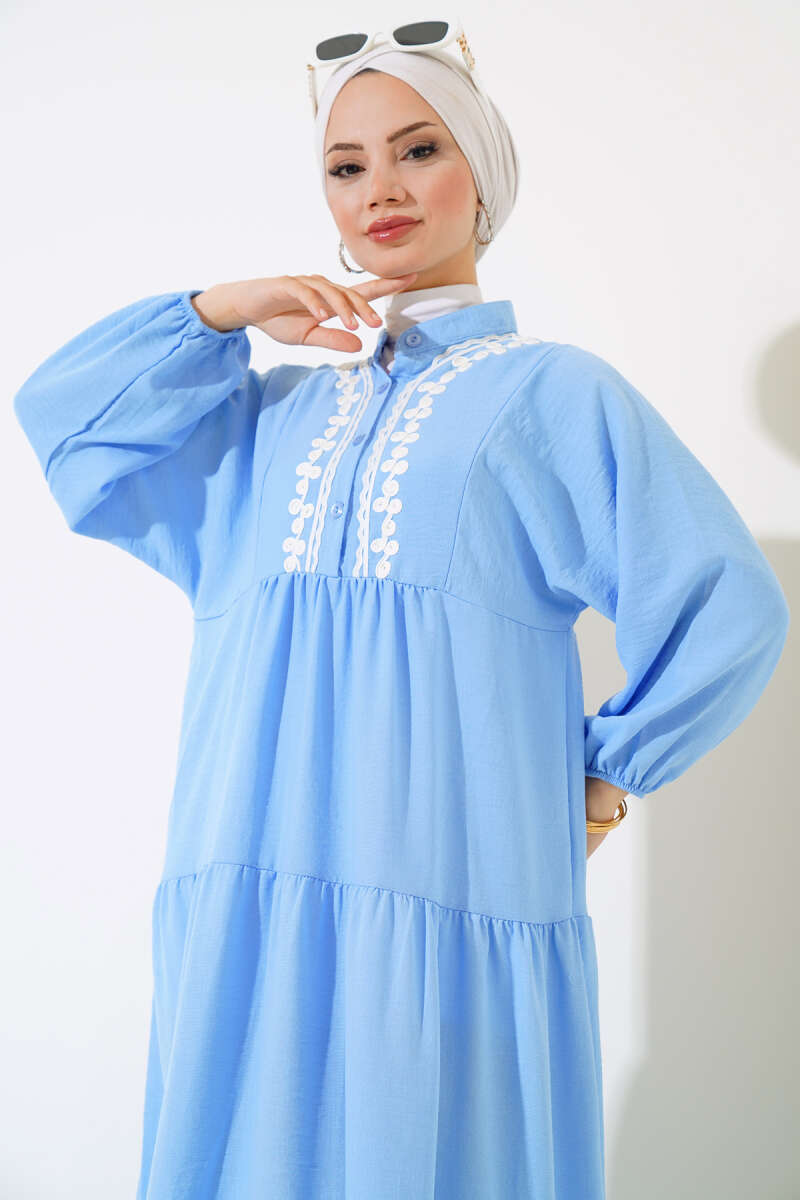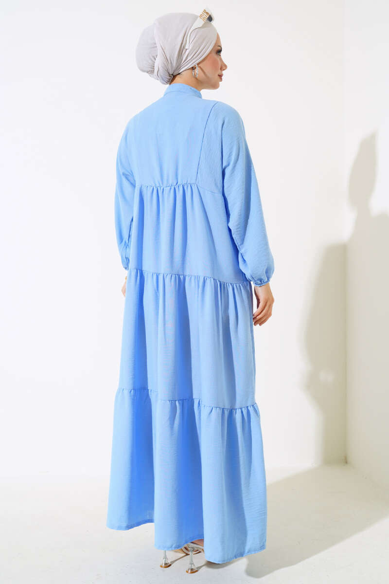 Brit Düğmeli Kuşaklı Elbise Bebe Mavi